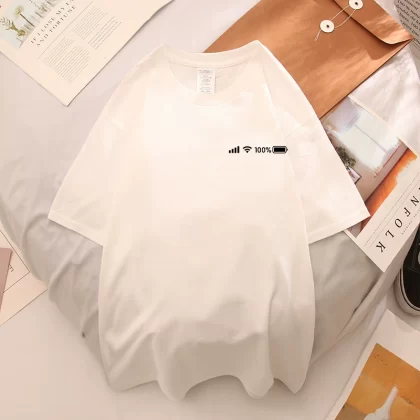 Yuanqi Men's and Women's Plus Size Couple Clothes Text Versatile Short Sleeves