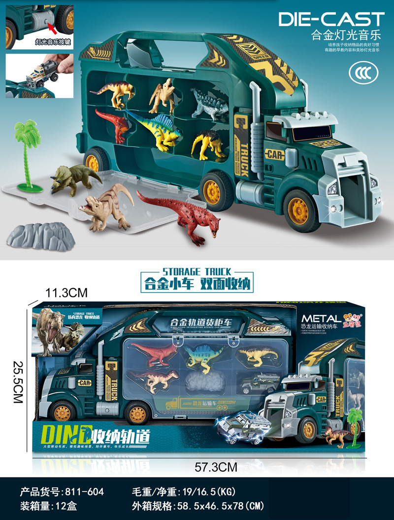 | nameOriginal | Yuehui's Double-sided Storage Alloy Car Dinosaur Toy Car Parent-Child Interactive Light Music Container Car |