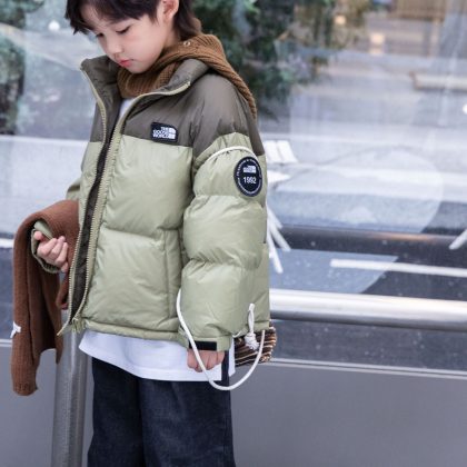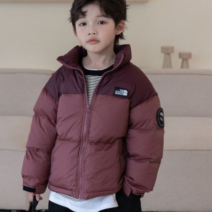 Yuguang 23 in stock new color matching letters girls boys medium and small children short children's white duck down jacket outside