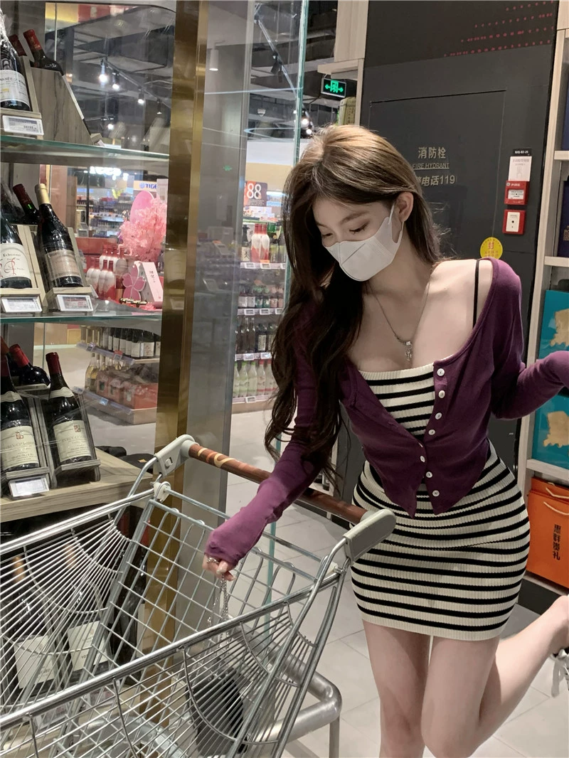 Yujie contrast stripe 2023 new suspender dress