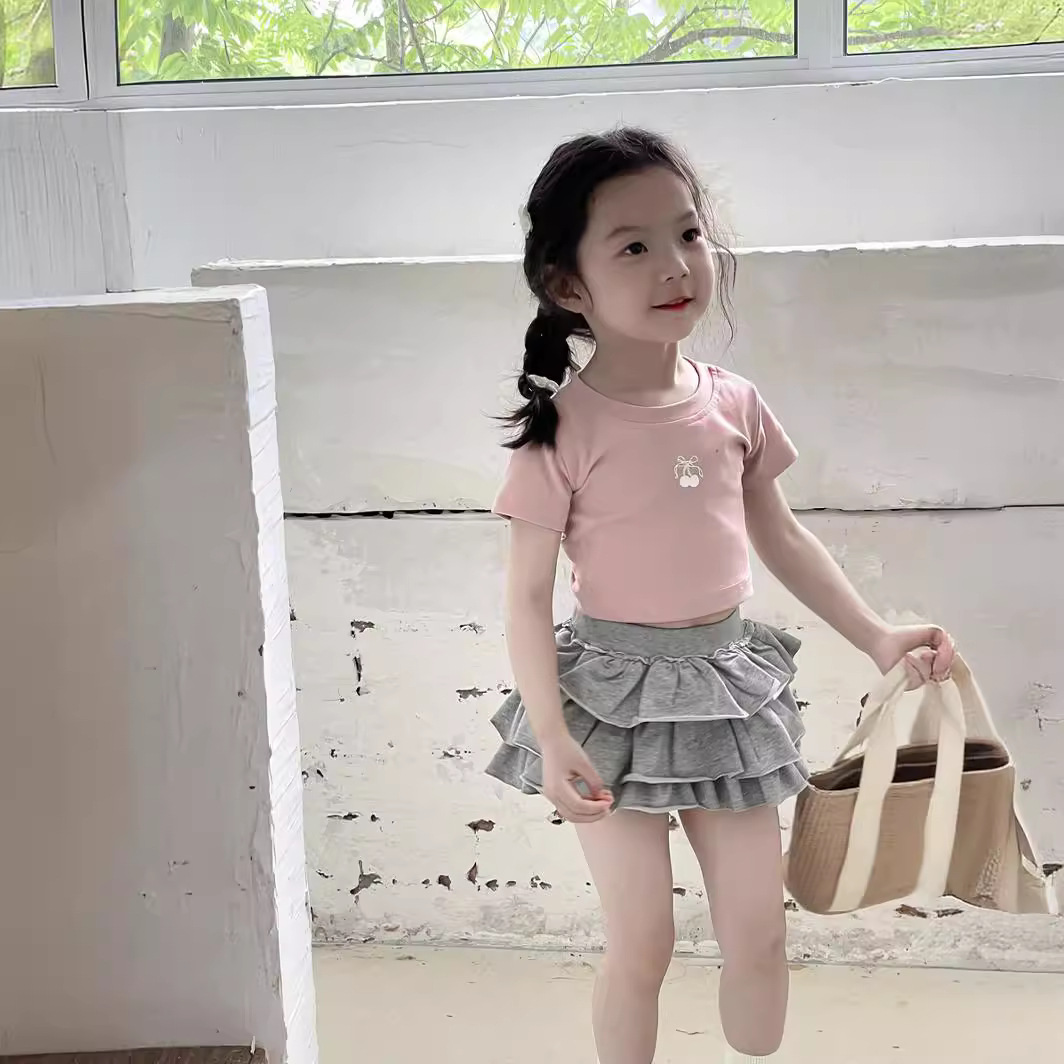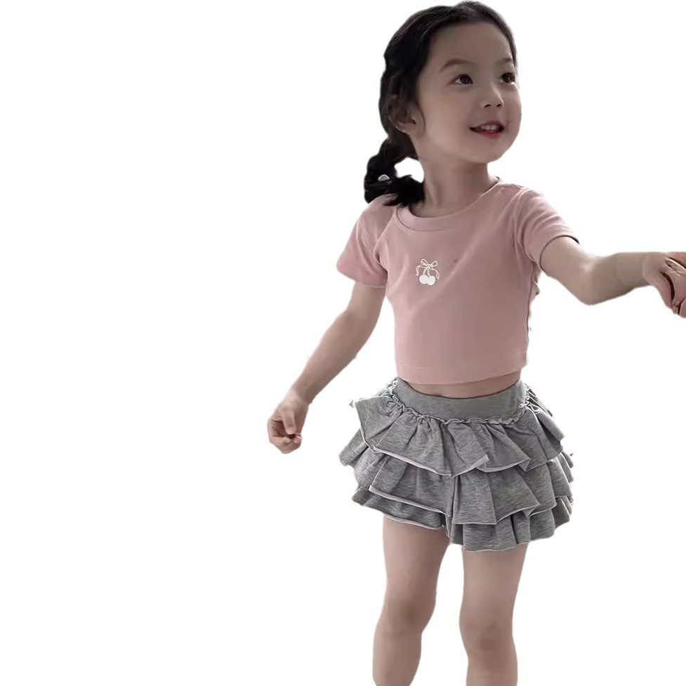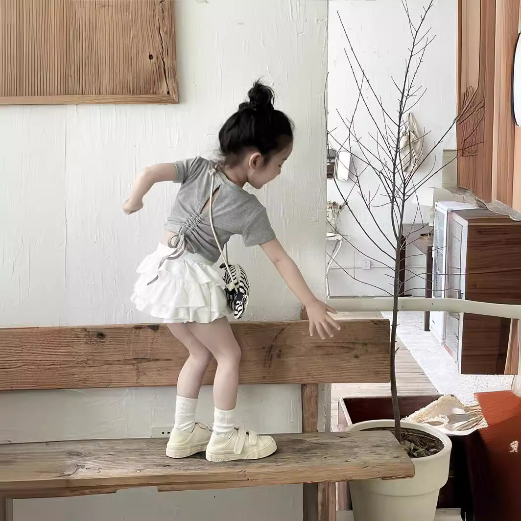 Yuyu Princess Girls' Cherry Backless T-shirt for Baby Girls Summer New Korean-style Drawstring Short Top