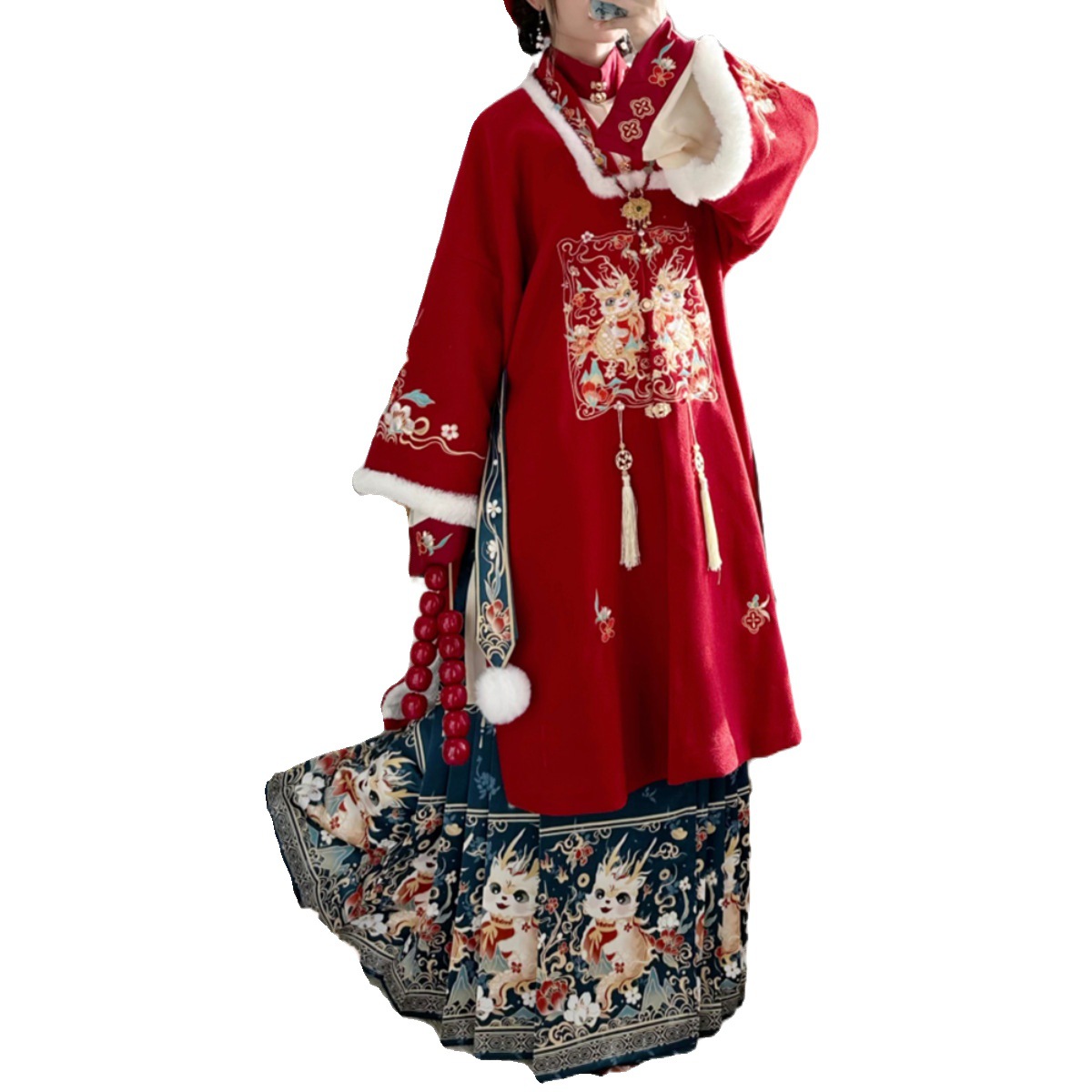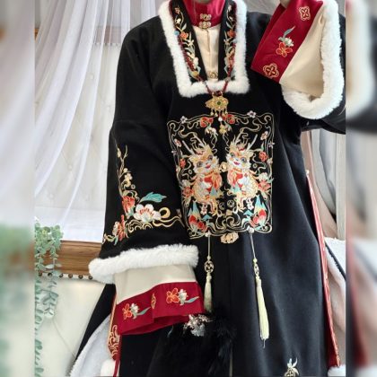 | nameOriginal | Zezhi original Hanfu women's Lucky Dragon Longming collar long jacket fleece-lined thickened embroidered daily vest dress winter |