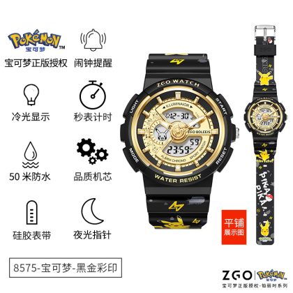ZGO Zhenggang Baokemeng Pikachu Watch Men's Junior High School Students Watch Women's Sports Waterproof Luminous Electronic Watch
