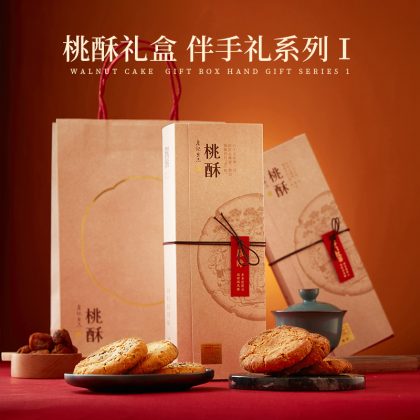 Zhan Ji peach cake new Chinese pastry breakfast leisure snack walnut crisp biscuit gift box with hand gift dessert health