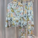 | nameOriginal | Zhao Lusi's same style pajamas for women spring and autumn ice silk long-sleeved summer internet celebrity style simulated silk cat star home wear |