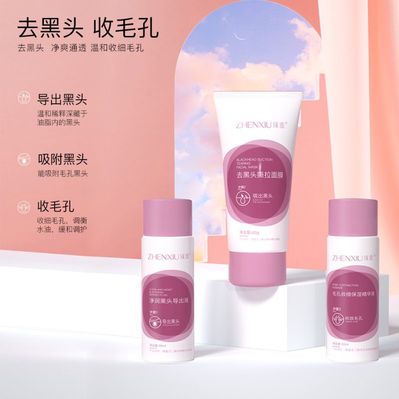 | nameOriginal | Zhenyan azelaic acid clean and smooth blackhead removal combination clean oil control blackhead removal outlet shrink pore essence |