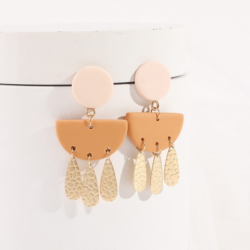 Zhongyi women's soft pottery earrings European and American cross-border popular geometric semicircle shape earrings factory supply new