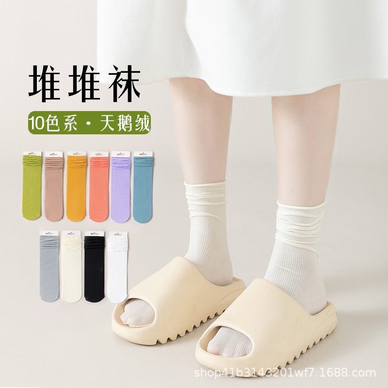 | nameOriginal | Zhuji Pile Socks Women's Summer Thin Solid Color Mesh Breathable Calf Socks Spring and Autumn White Japanese jk Stockings |
