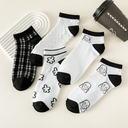 | nameOriginal | Zhuji socks wholesale black and white series simple cartoon Japanese girls spring and autumn low-cut low-top invisible short boat Socks |
