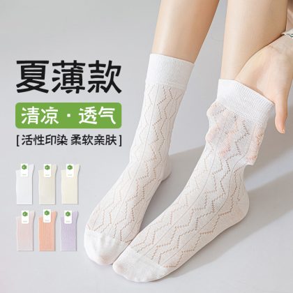 Zhuji socks women's mid-calf socks hollow out spring and summer thin cotton confinement pile socks summer pure cotton candy color boneless socks