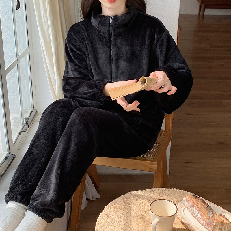 Zipper women's autumn and winter milk velvet thickened pajamas