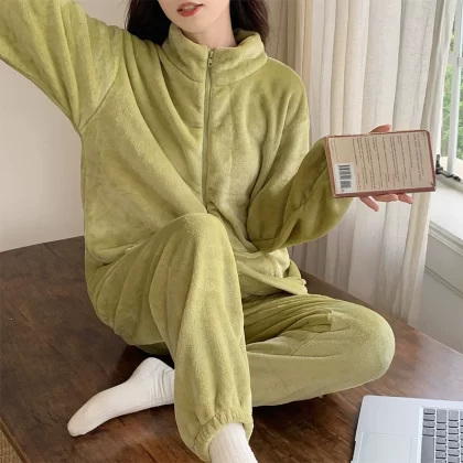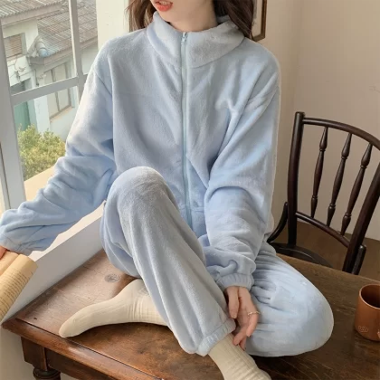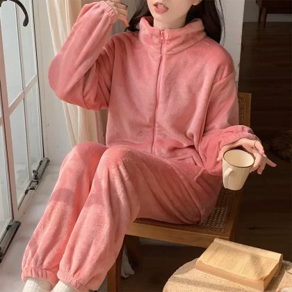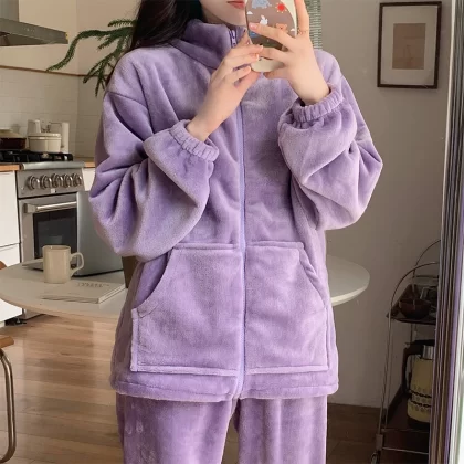 بيجامة نسائية سميكة بسحاب للخريف والشتاء من المخمل الحليبي