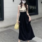 | nameOriginal | Zippered sleeveless spring striped patchwork A-line skirt vest |