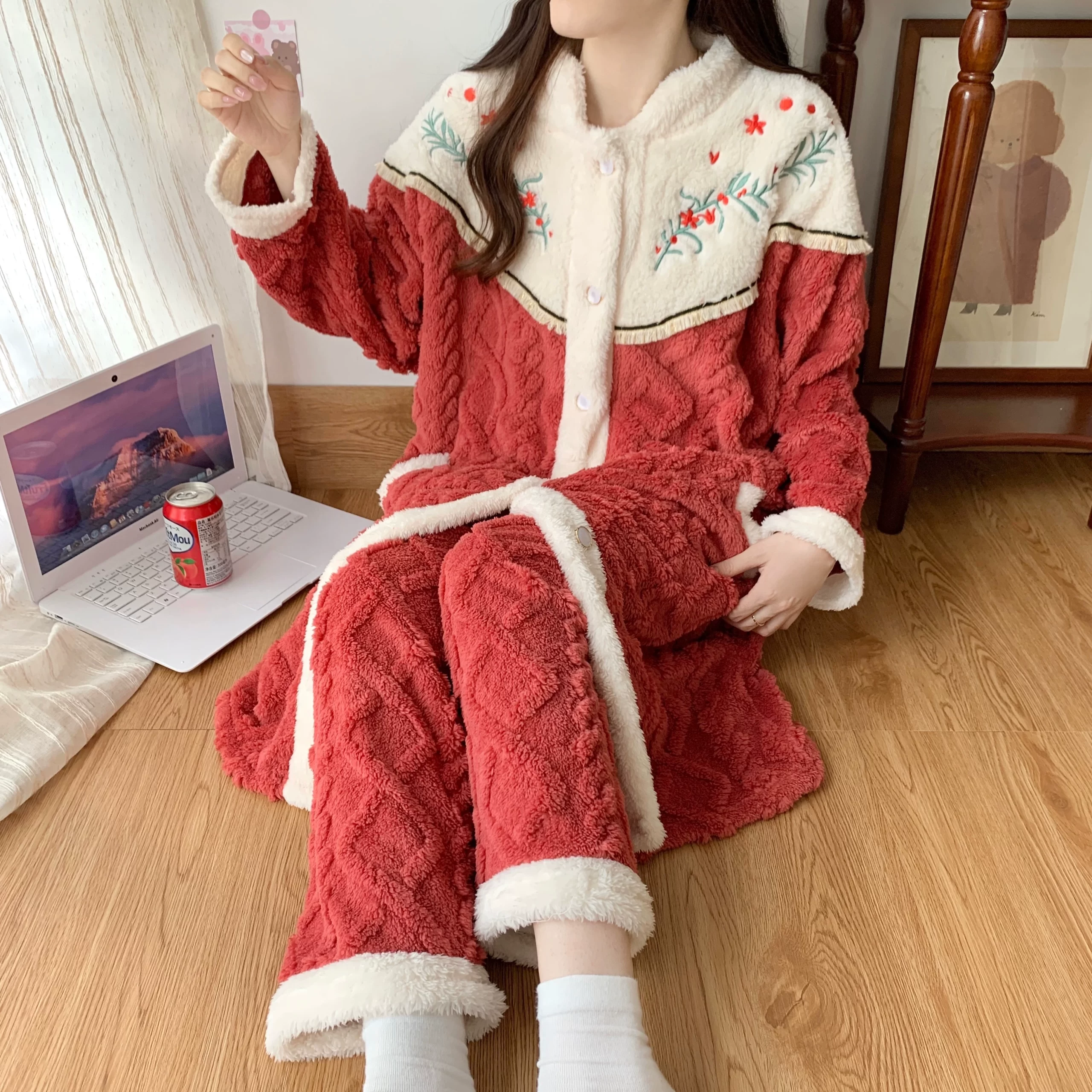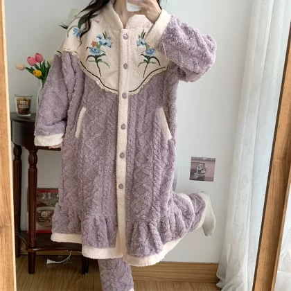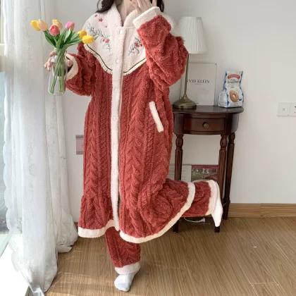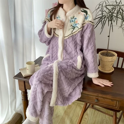 | nameOriginal | Ziqi Donglai Nightgown Women's Coral Fleece Autumn and Winter New Chinese Style Flannel Plus Velvet Thickened Elegant Homewear Set |