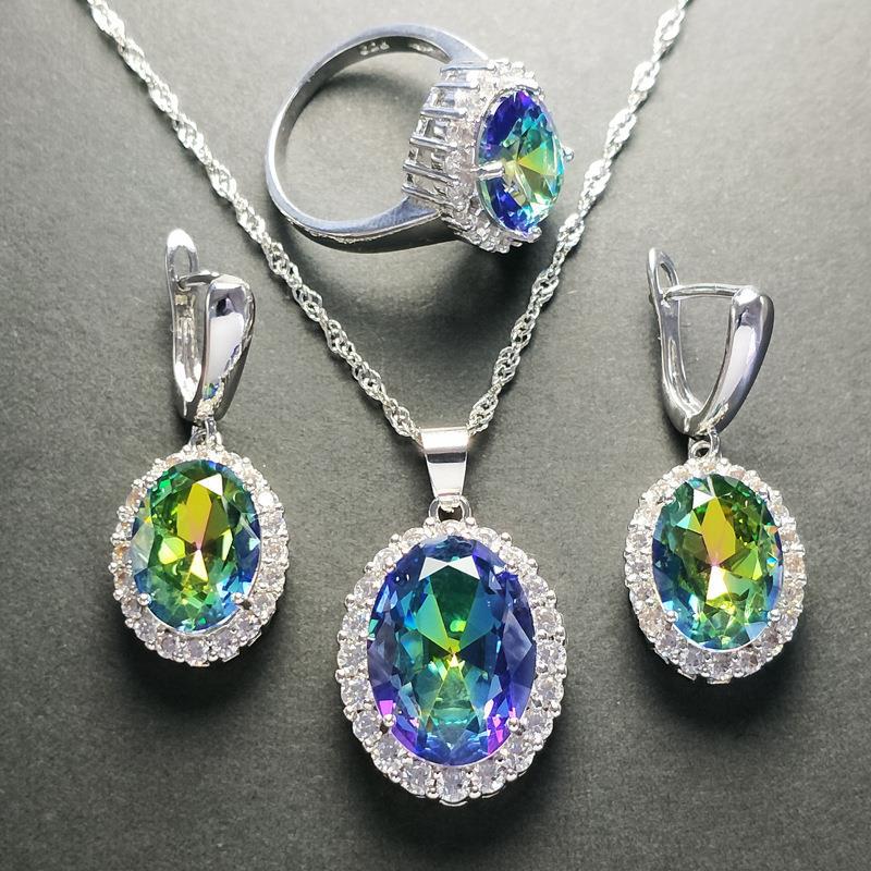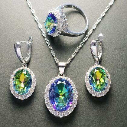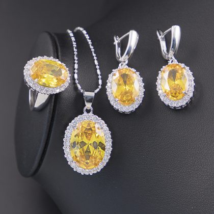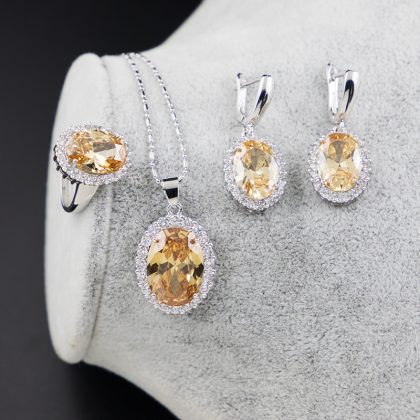 | nameOriginal | Zircon Necklace Bride jewelry Color Treasure set Women's Necklace Earrings Ring Three-Piece set jewelry set |