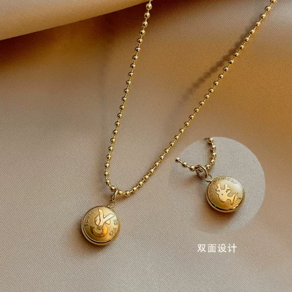 | nameOriginal | Zodiac year round bead coin gold coin necklace women's simple retro clavicle chain titanium steel jewelry temperament versatile accessories |