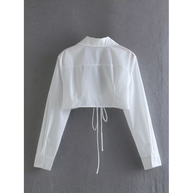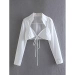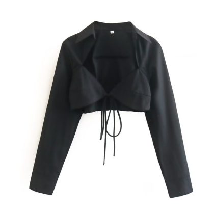 ZR التجارة الخارجية بالجملة ملابس نسائية على الطراز الأوروبي والأمريكي ملابس فرنسية ضيقة تناسب الصدر التفاف تصميم الدانتيل تحسس قميص قصير الأعلى