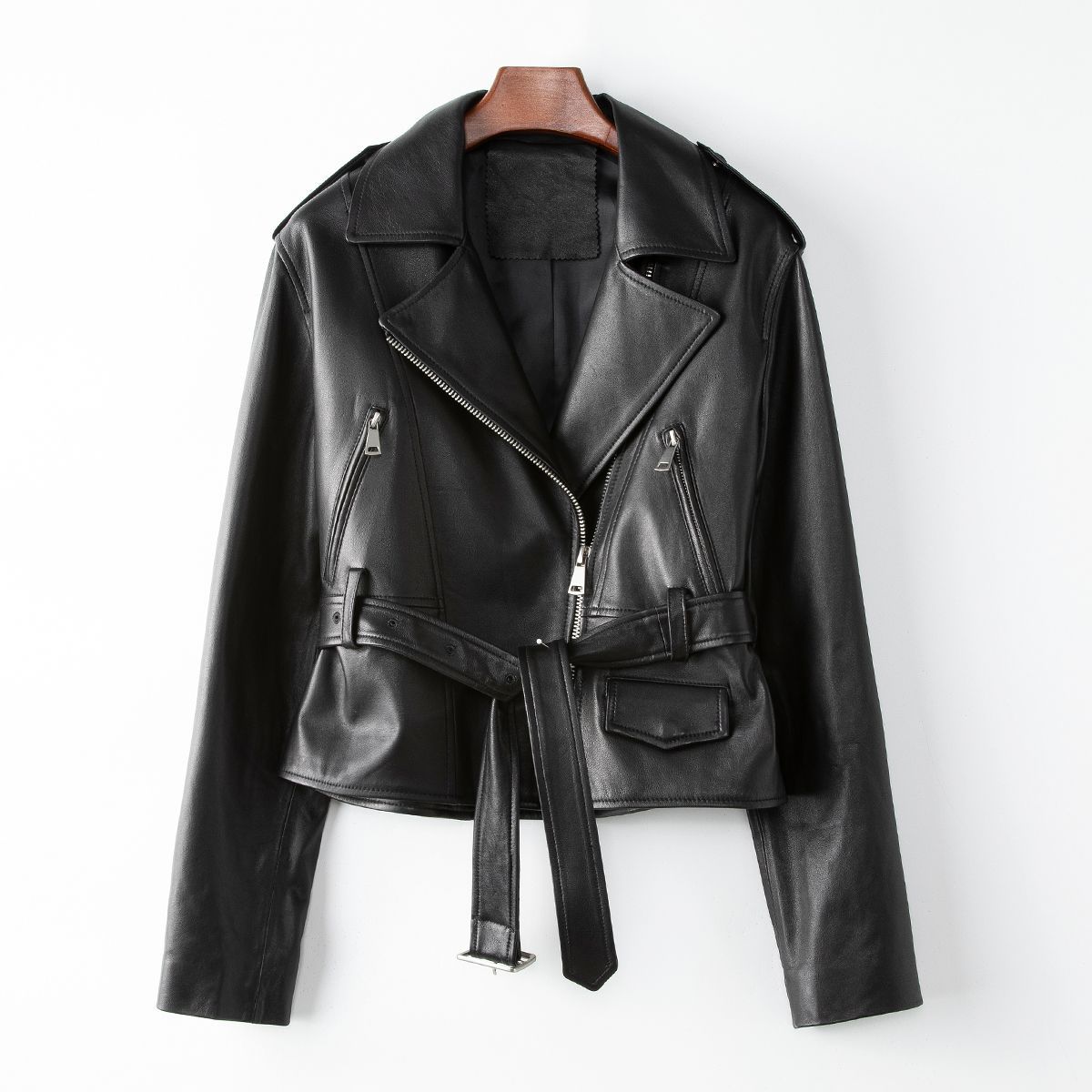 Small Amount of Clothing 2024 Haining Spring 100 Vegetable Tanned Sheepskin Genuine Leather Top Fashion Motorcycle Style Leather Jacket