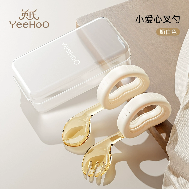 Ying’s baby eats complementary food spoons for one year old learning to eat and train children’s PPSU tableware elbow fork spoons