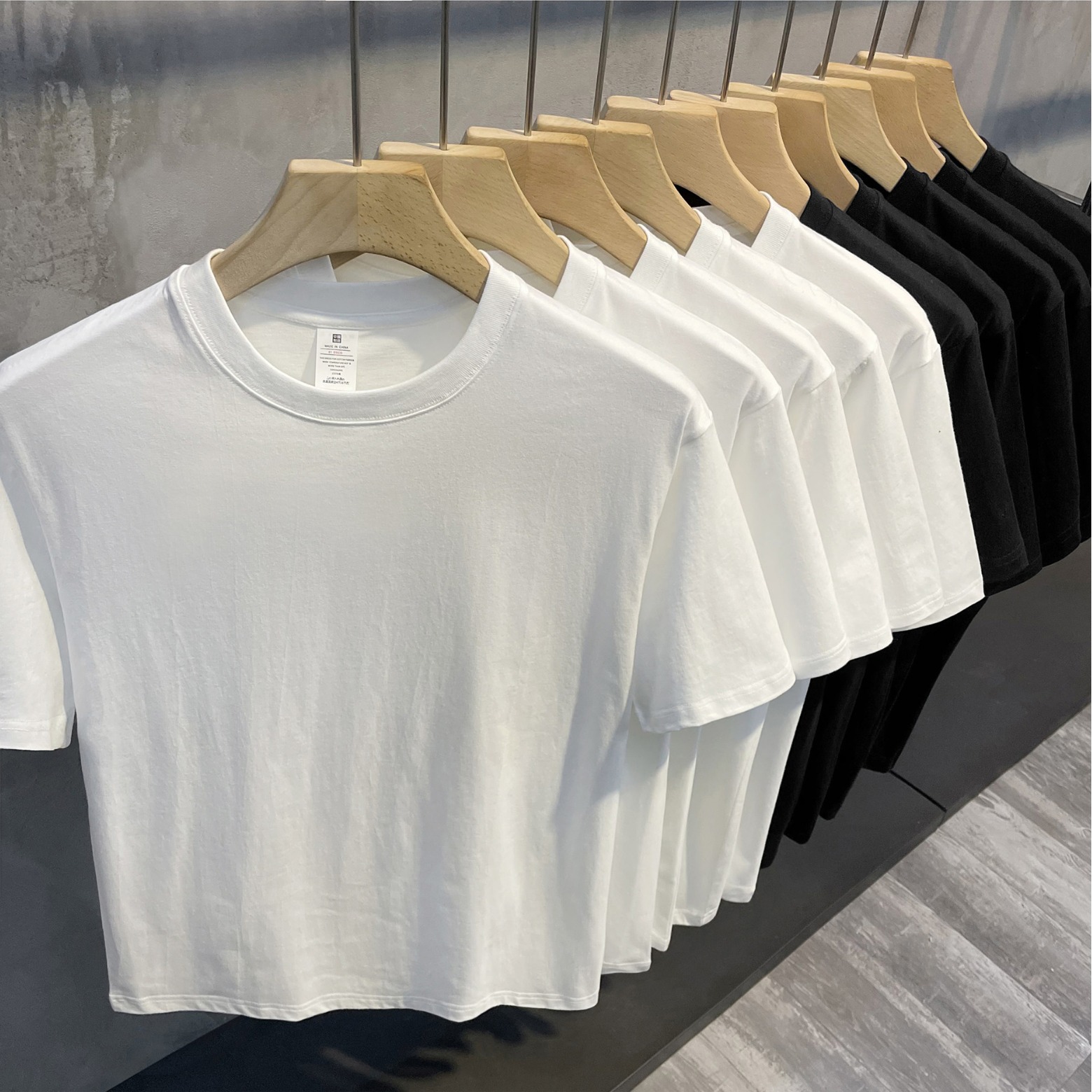 Heavy cotton summer trendy pure color pure white loose all-match half sleeve short sleeve T-shirt men’s and women’s bottoming top round neck