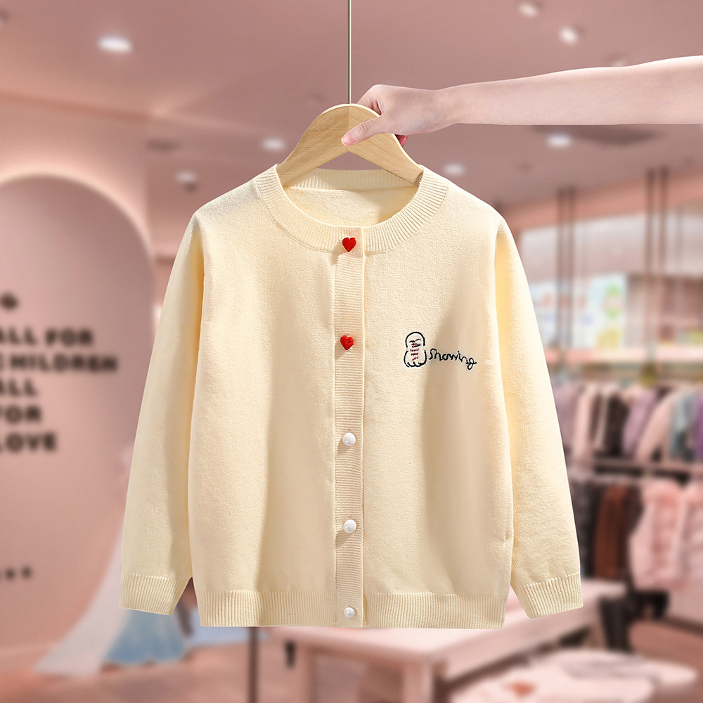 Girls’ sweater cardigan spring, autumn and winter 2023 new round neck single-breasted coat girls’ Western style sweater sweater sweater
