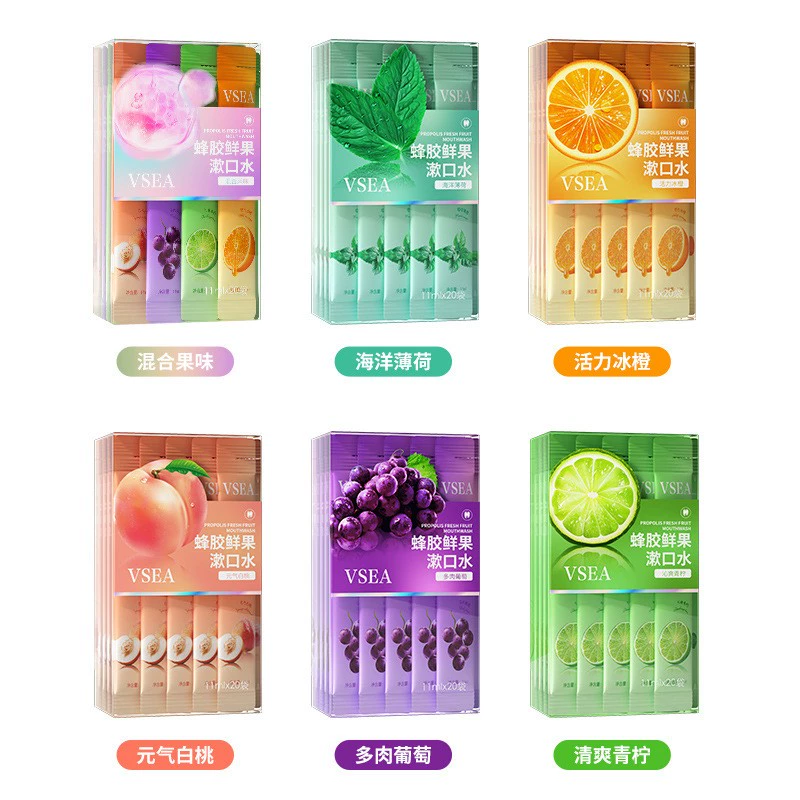 | nameOriginal | Fruit-flavored mouthwash is a portable disposable small package that cleans food residues in the mouth, freshens breath and improves odor. |