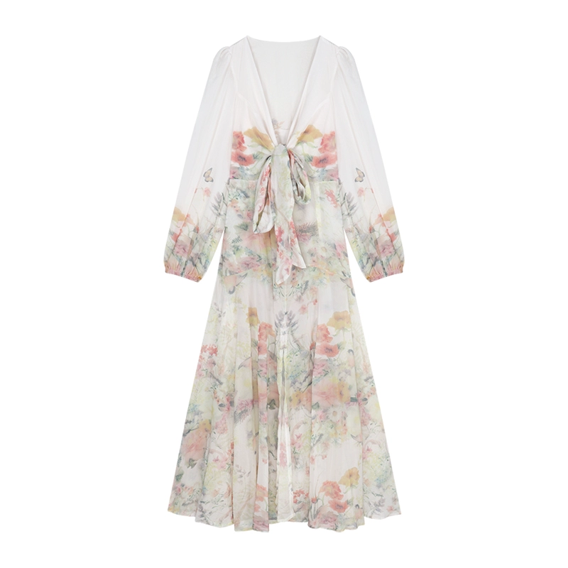 | nameOriginal | V-neck fairy summer bow long-sleeved dress |