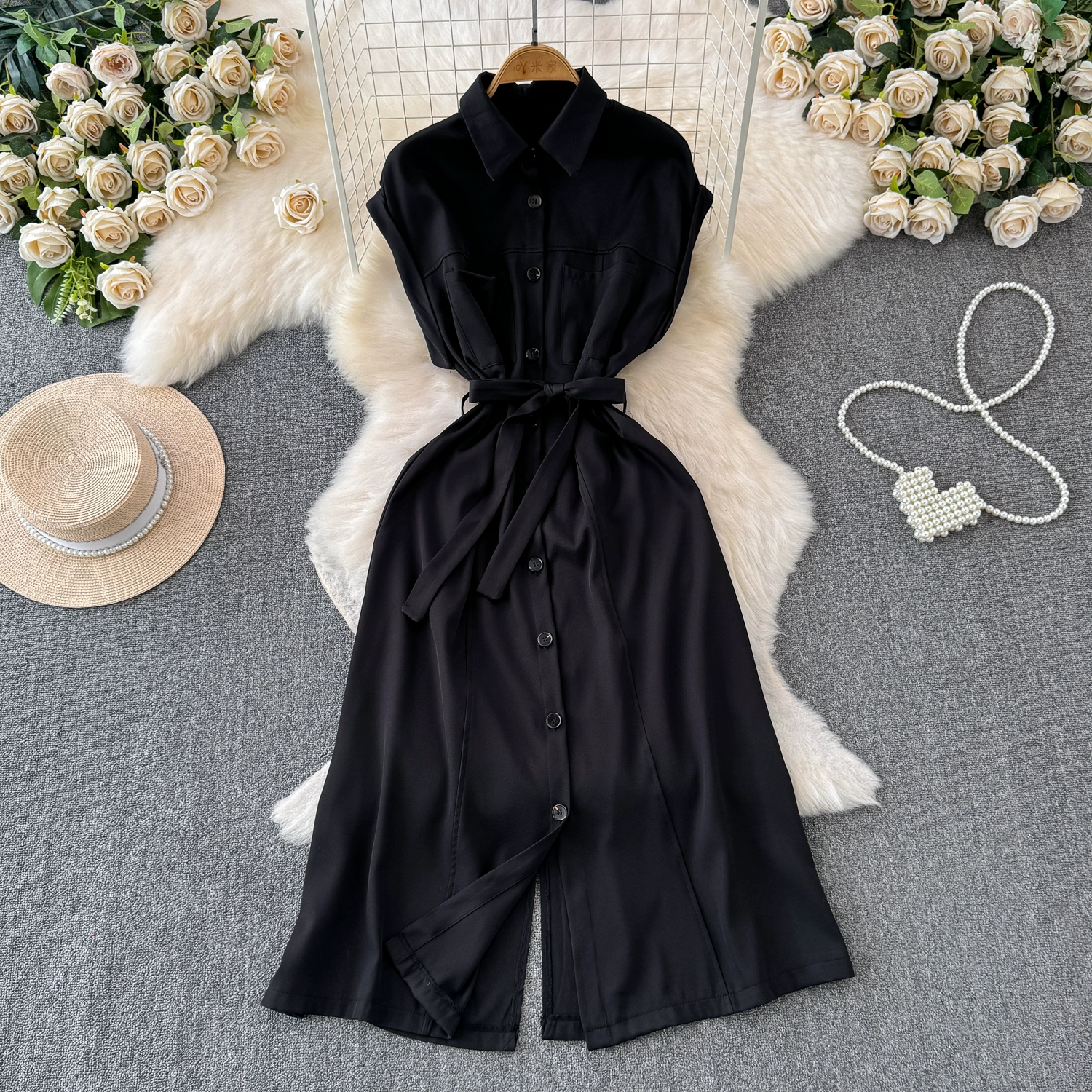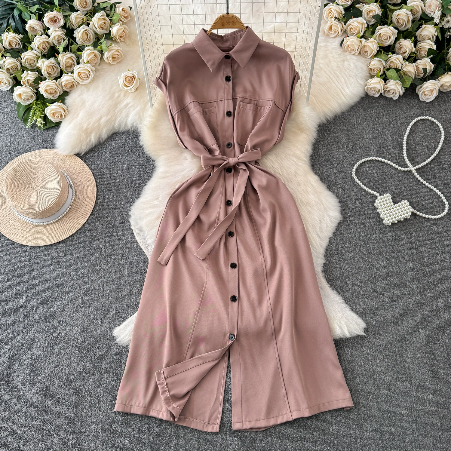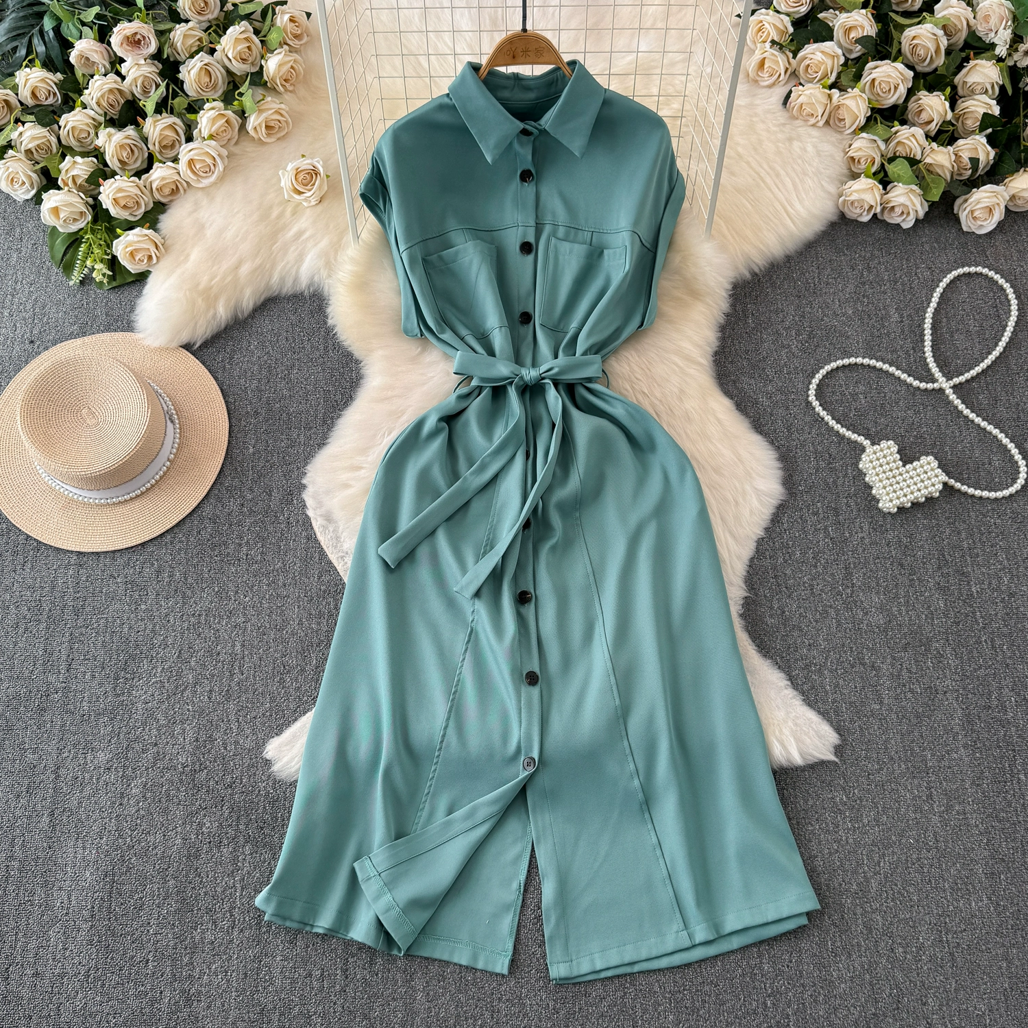 | nameOriginal | Dress women's summer 2024 new style temperament royal sister light mature style French single-breasted slim shirt skirt lace-up waist |