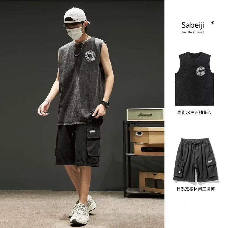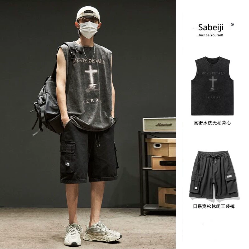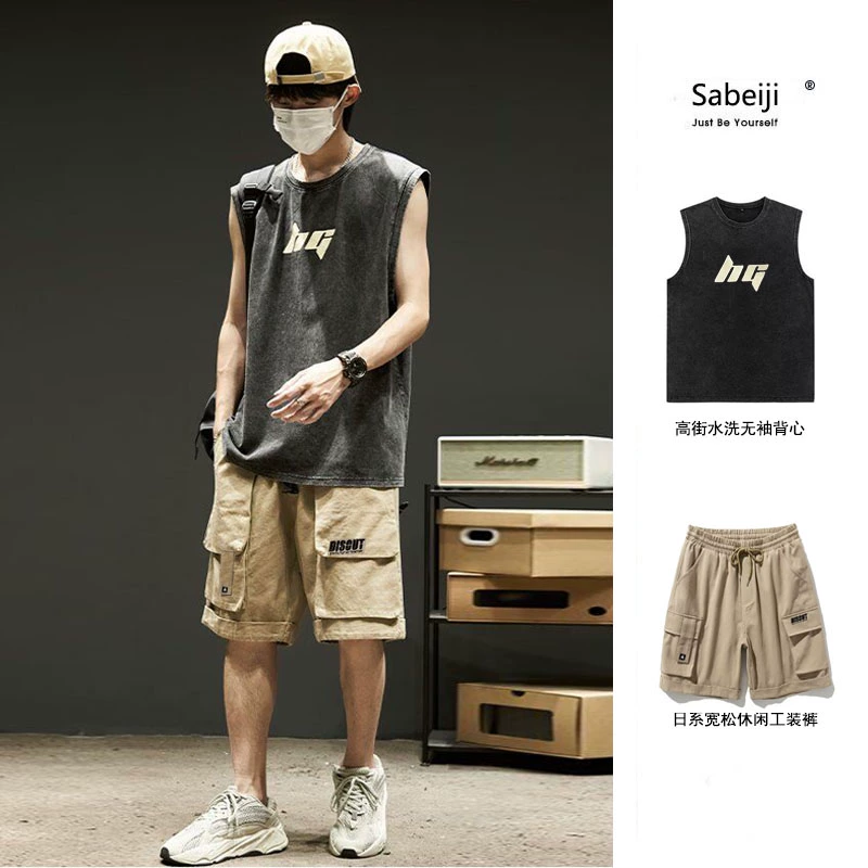 | nameOriginal | Vest men's summer fashion brand Japanese American ins high street hip-hop sleeveless t-shirt suit undershirt loose waistcoat top |
