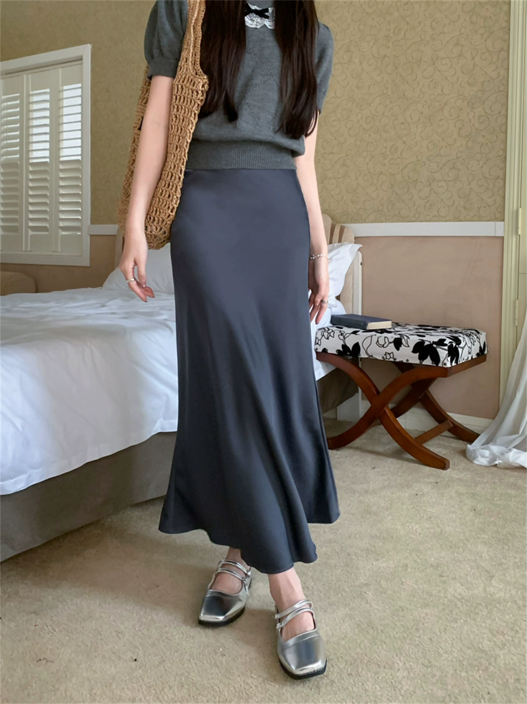 | nameOriginal | French draped summer champagne acetate maxi dress satin |