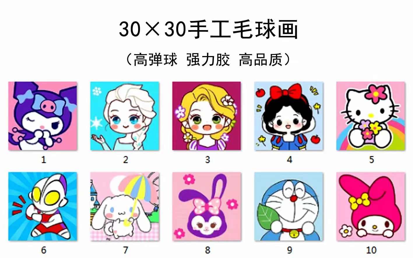 | nameOriginal | Cartoon anime hair ball painting handmade material package kindergarten art children diy parent-child creative paste painting |