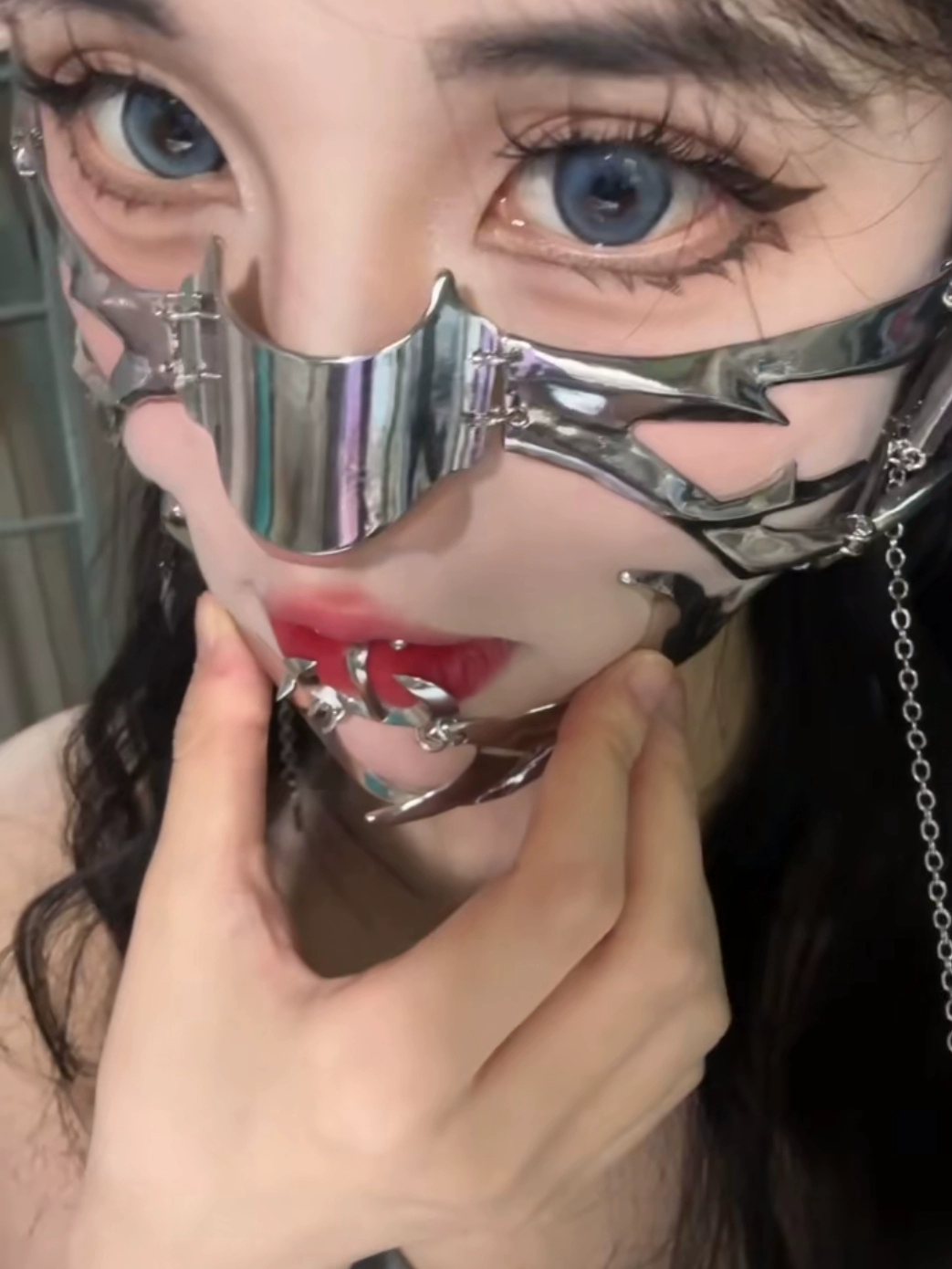| nameOriginal | Special-shaped fluid surface decoration Douyin's same style lip ring earrings niche adjustable for men and women super cool metal cybernetic mechanical style |