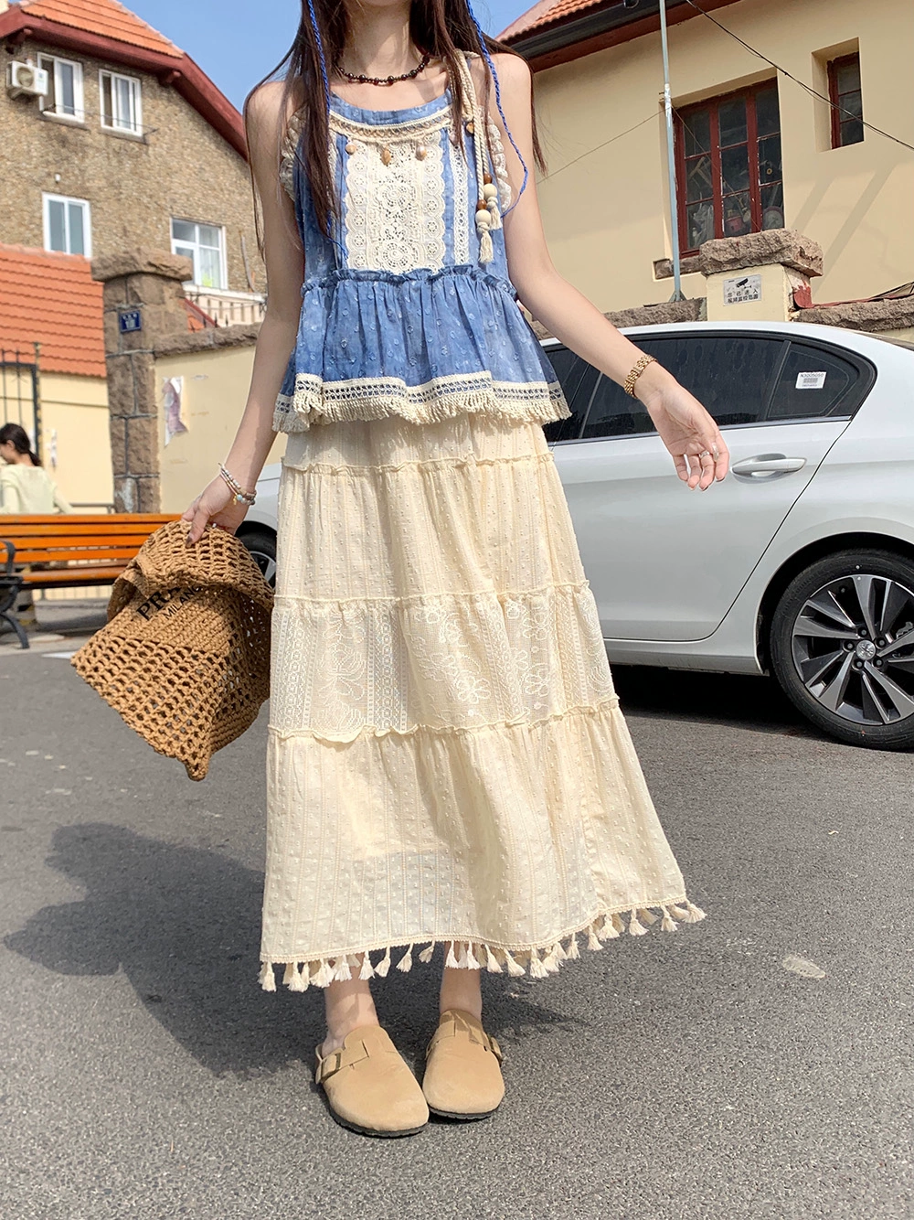 | nameOriginal | Resort style tie-dye tassel lace women's summer suspender belt |