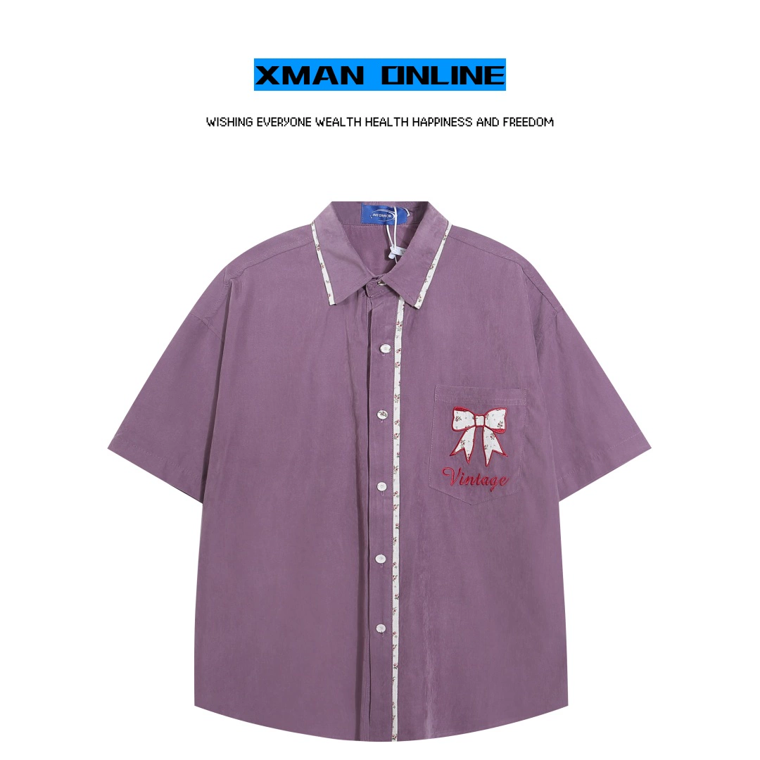 | nameOriginal | Xman trendy French bow embroidered pocket short-sleeved shirt for men and women lazy style retro shirt spring and summer jacket |