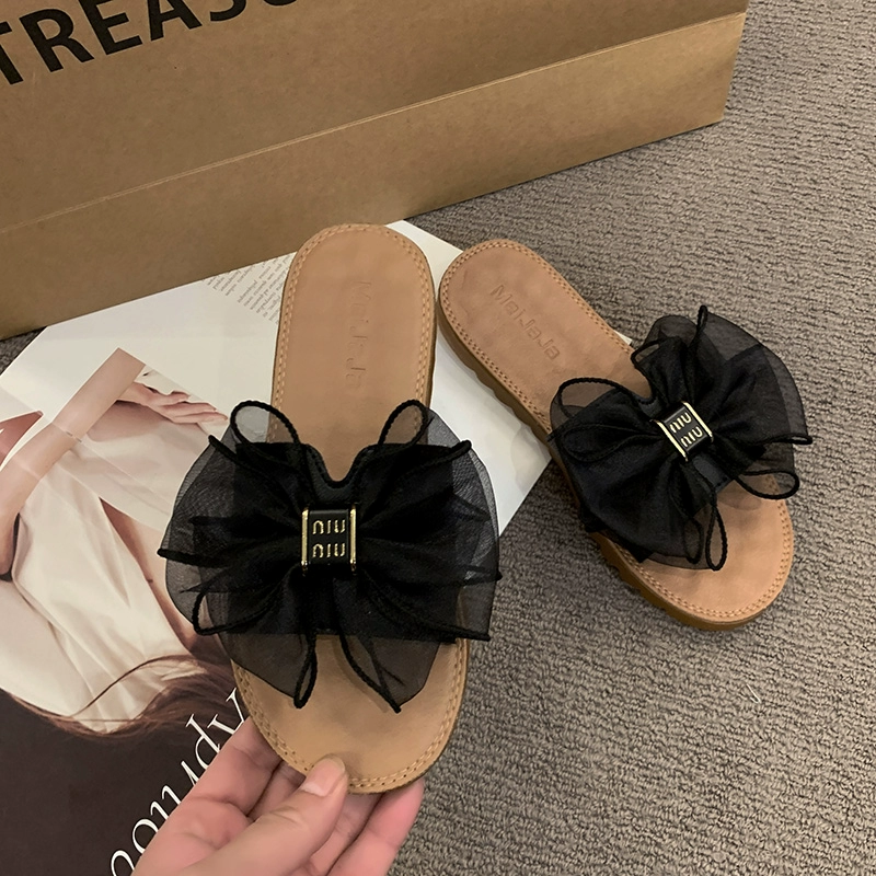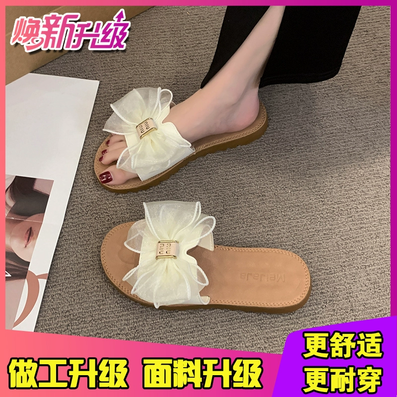 | nameOriginal | Beef tendon soft-soled slippers for women's summer outer wear 2024 new fashion bow slip-ons flat-soled anti-slip slippers for pregnant women |