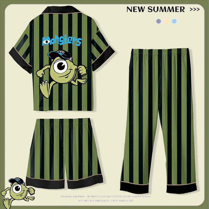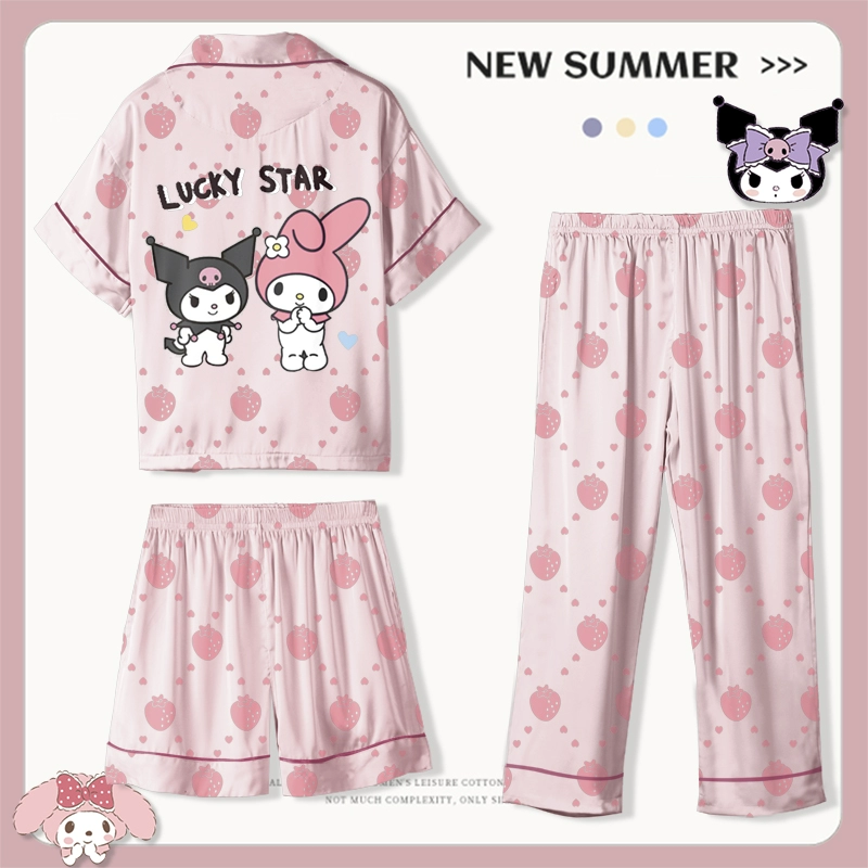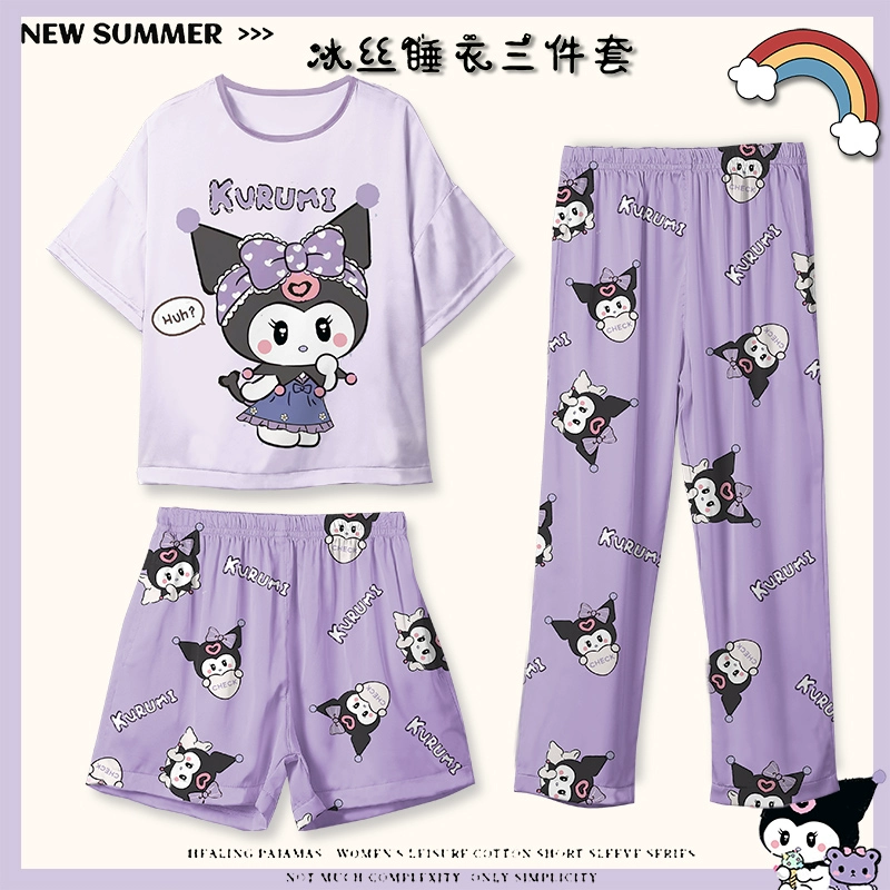 | nameOriginal | Children's pajamas girls spring and summer thin ice silk short-sleeved trousers three-piece suit 3-16 girls silk home clothes |