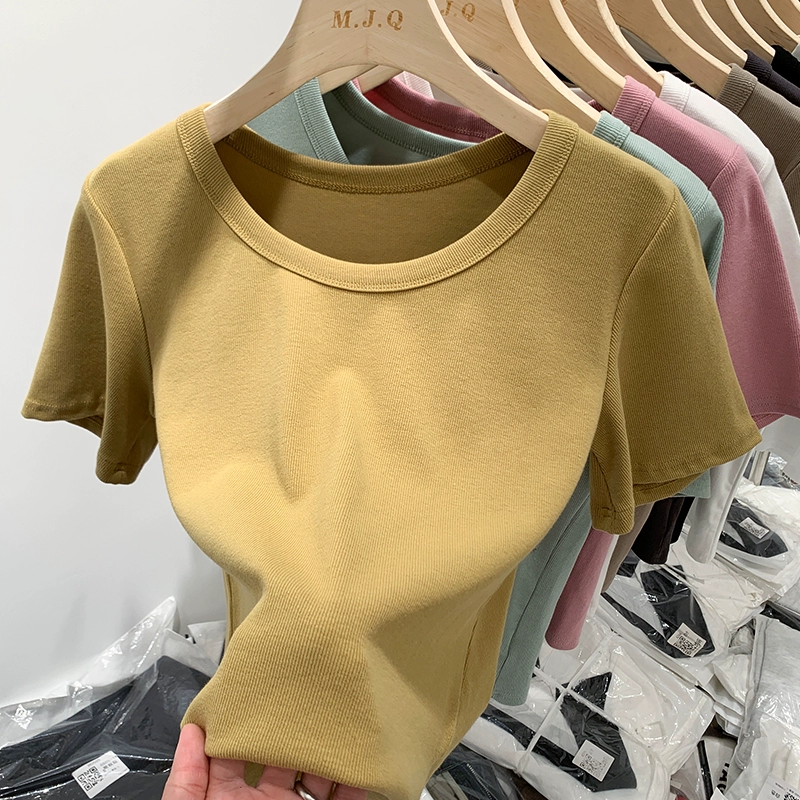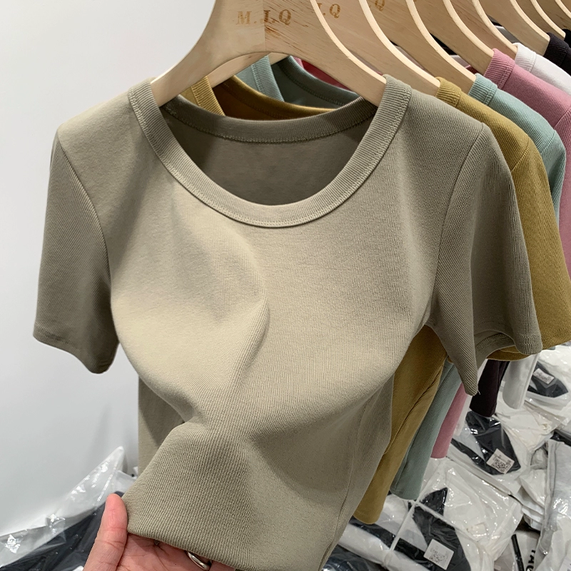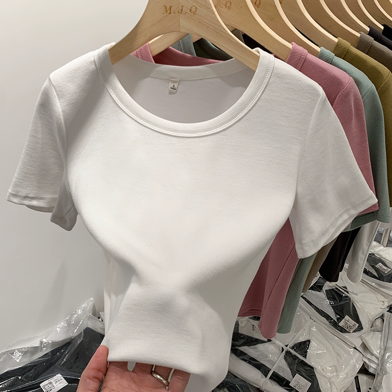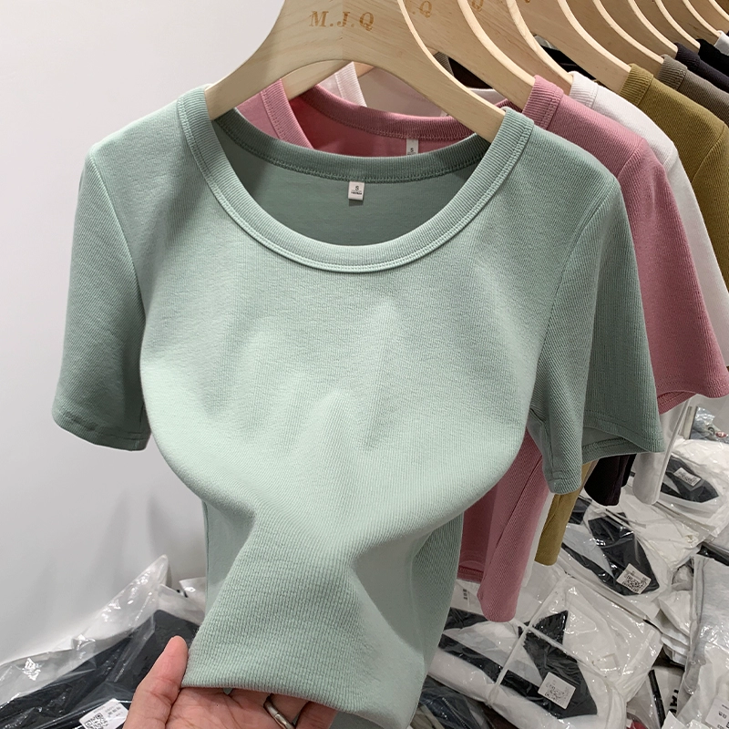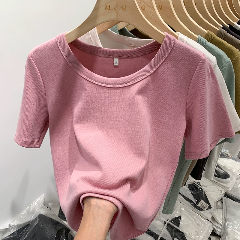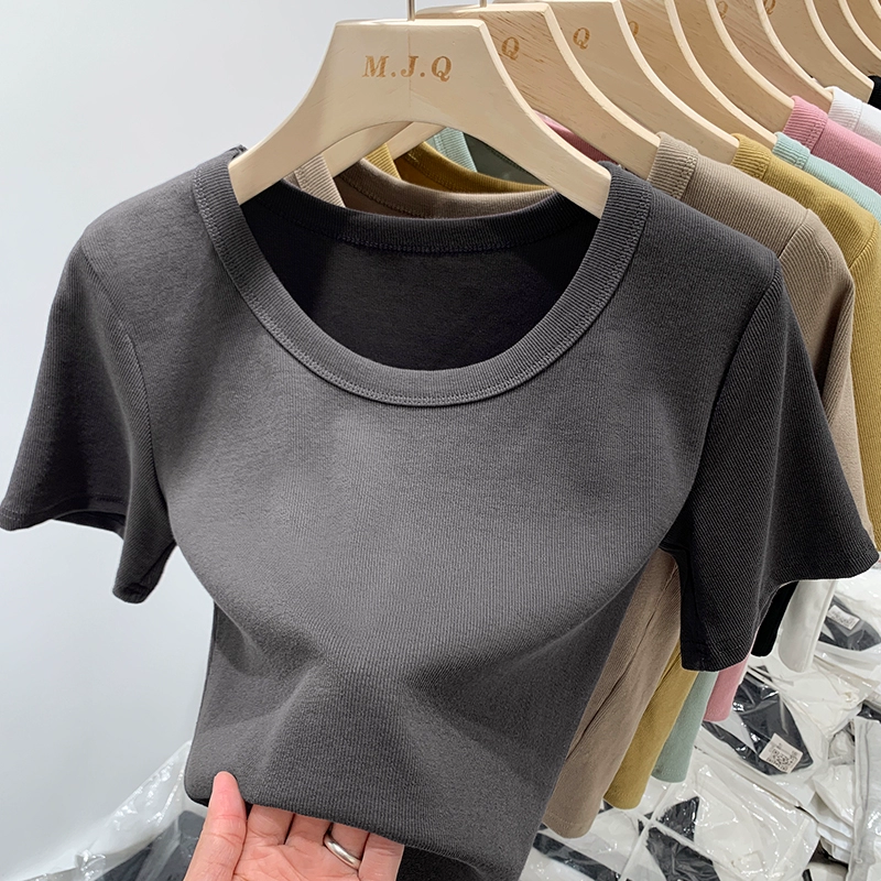 | nameOriginal | Round neck short-sleeved T-shirt for women 2024 summer new style loose slimming threaded basic style niche outer wear simple top ins |