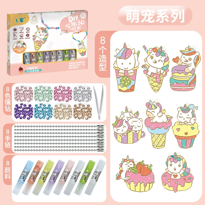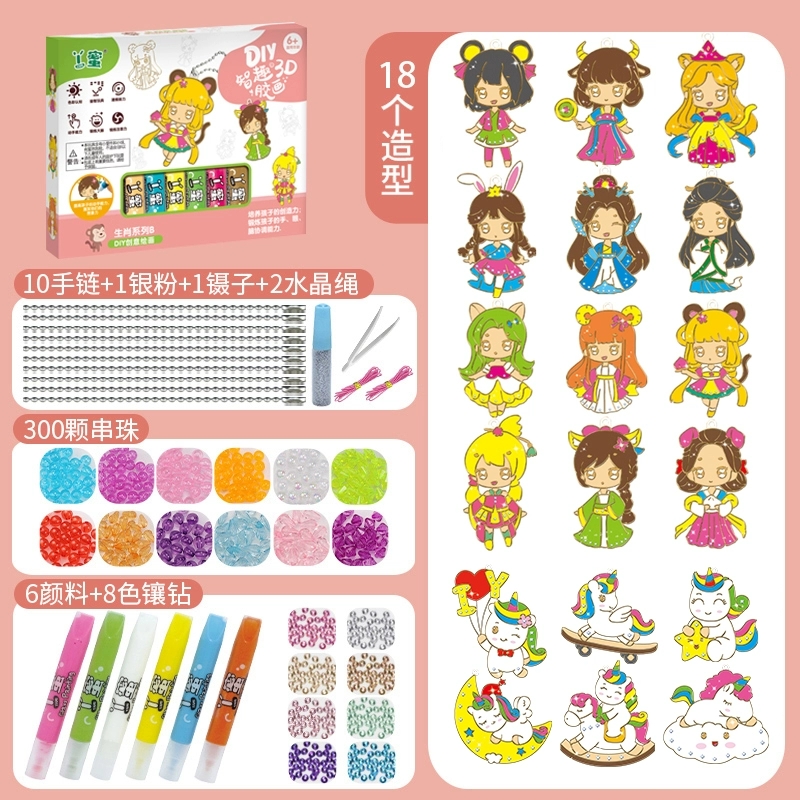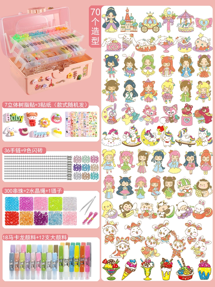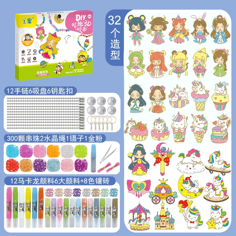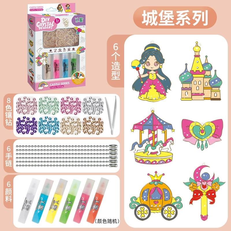 | nameOriginal | Bake-free glue painting toy girl handmade diy castle coloring painting children's baking painting cute treasure crystal wheel treasure 6 paintings |