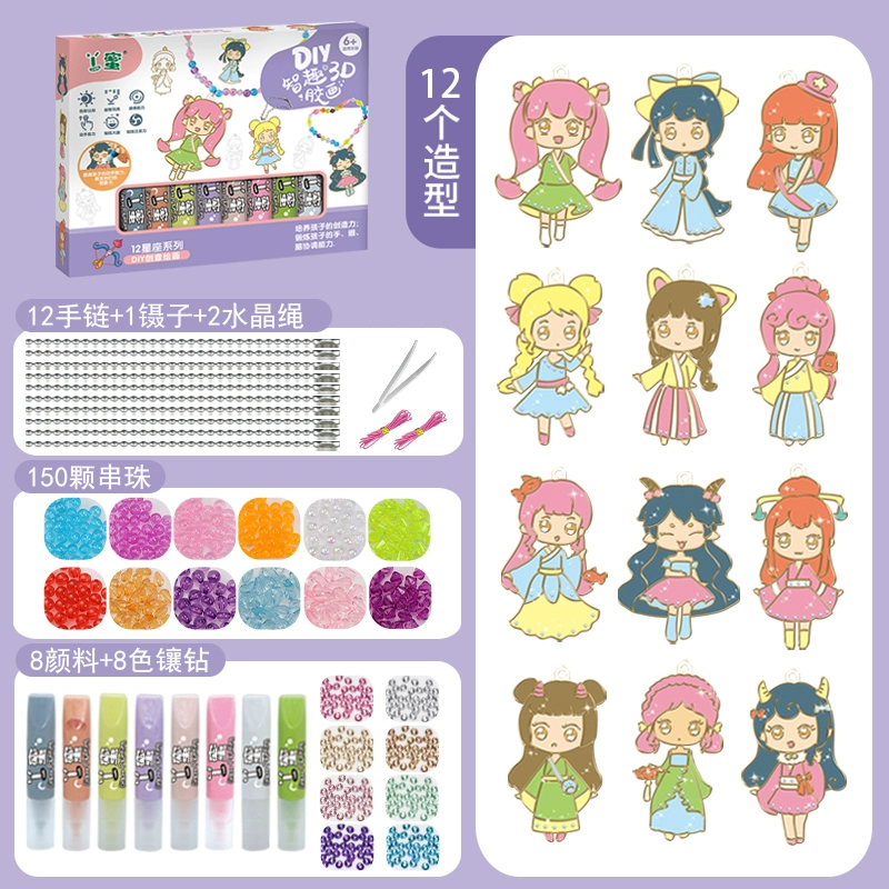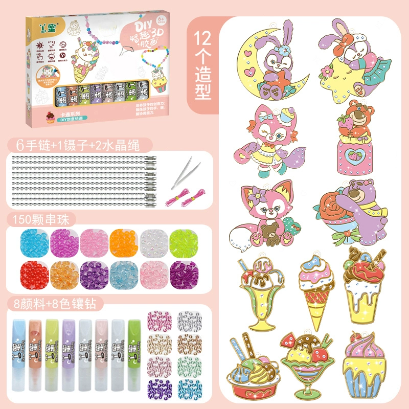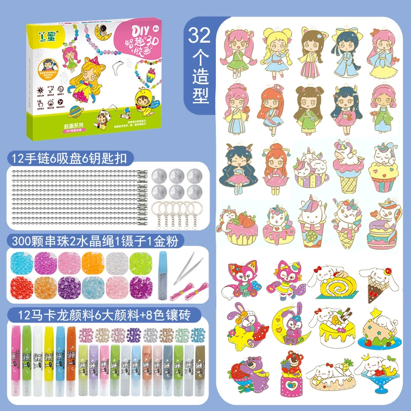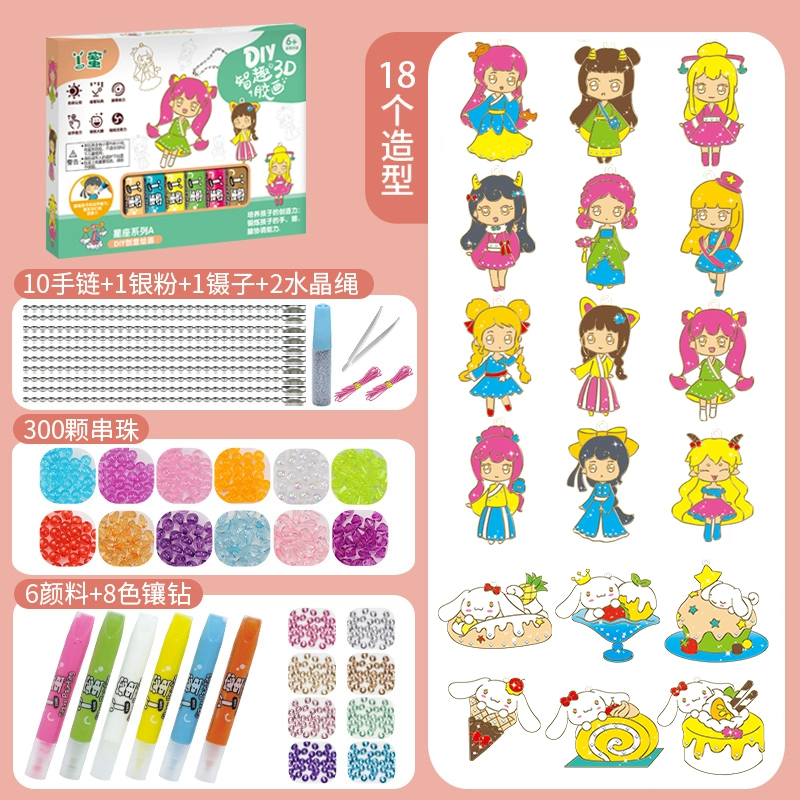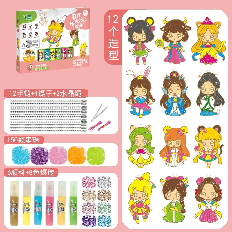 | nameOriginal | Bake-free glue painting toy girl handmade diy castle coloring painting children's baking painting cute treasure crystal wheel treasure 6 paintings |