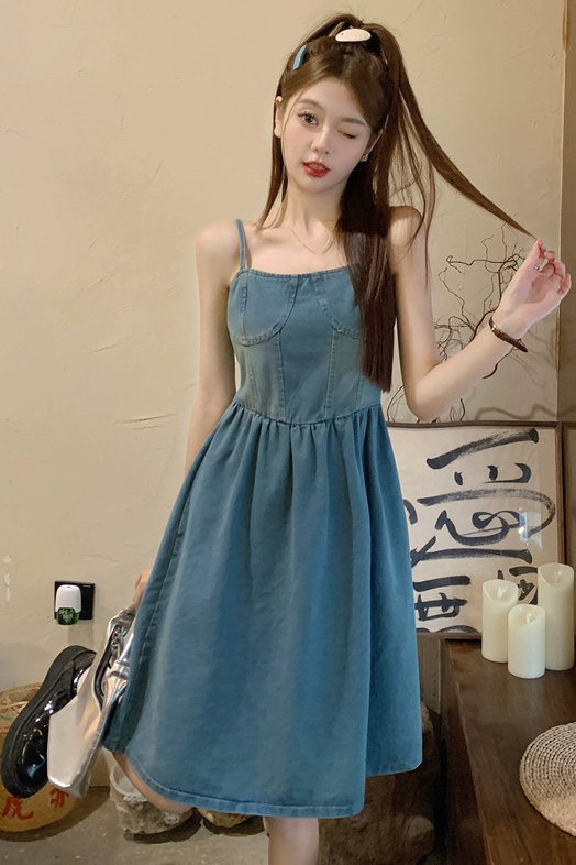 | nameOriginal | Denim suspender dress fat mm niche a line tube top |