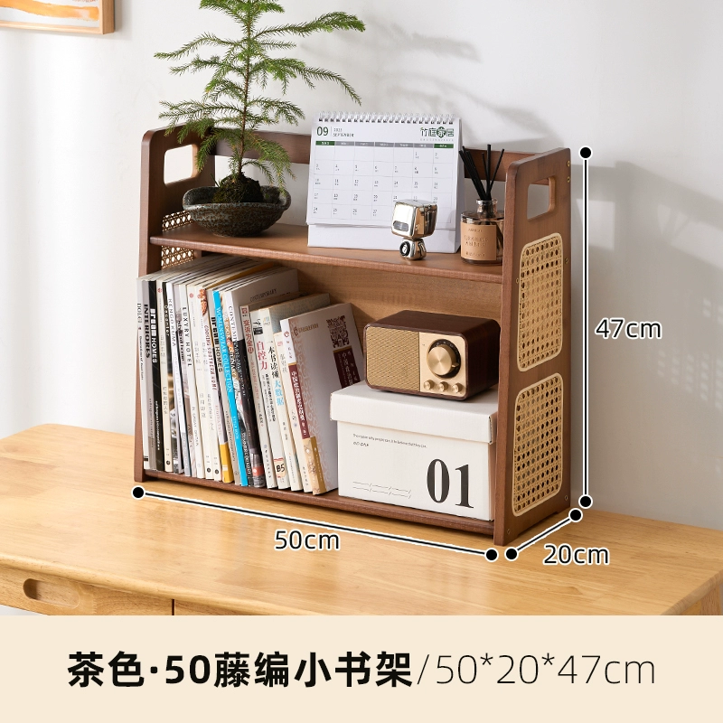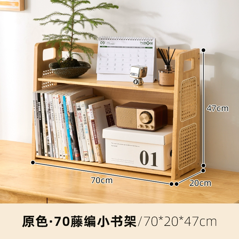 Rattan desktop small bookshelf home student desk storage shelf simple multi-layer office desk storage rack