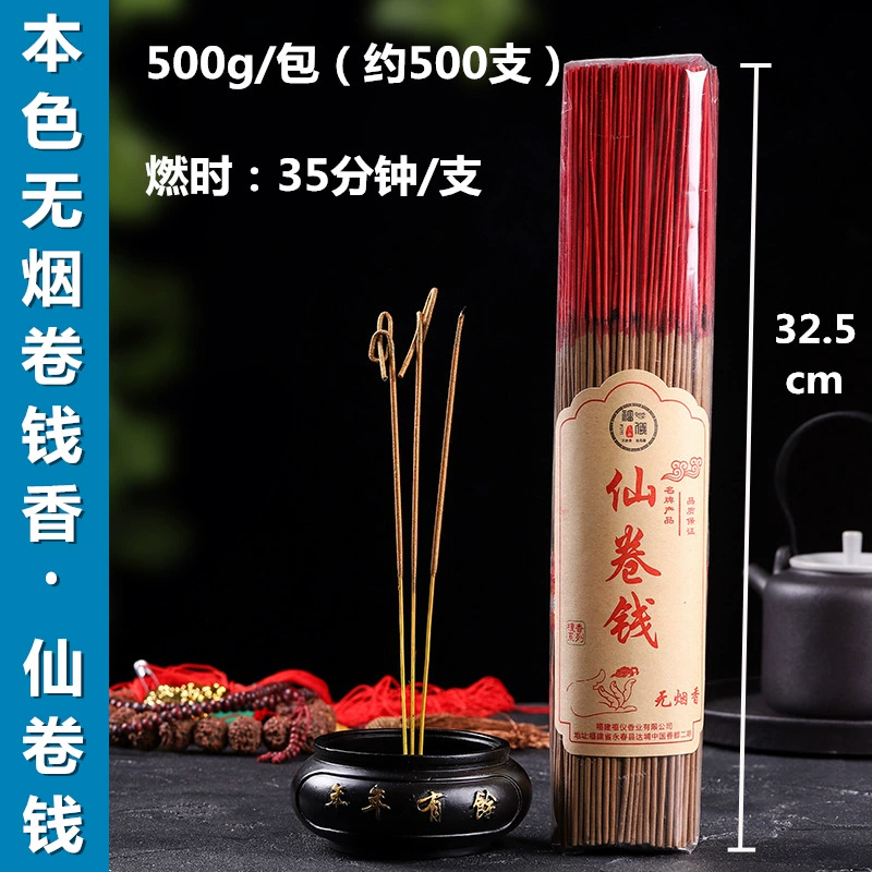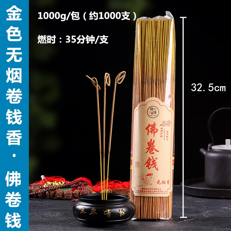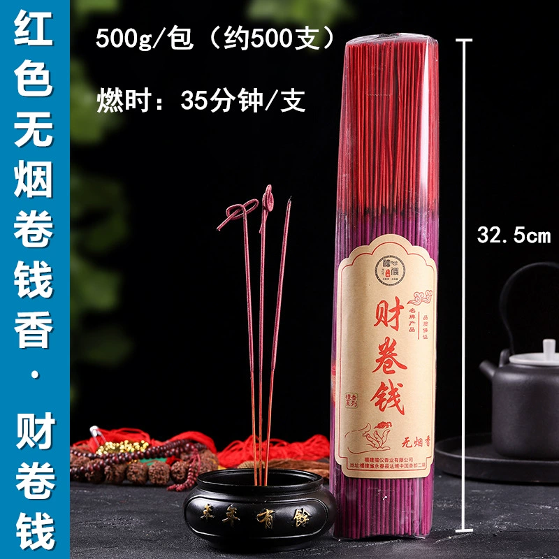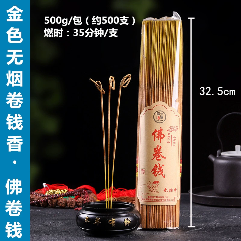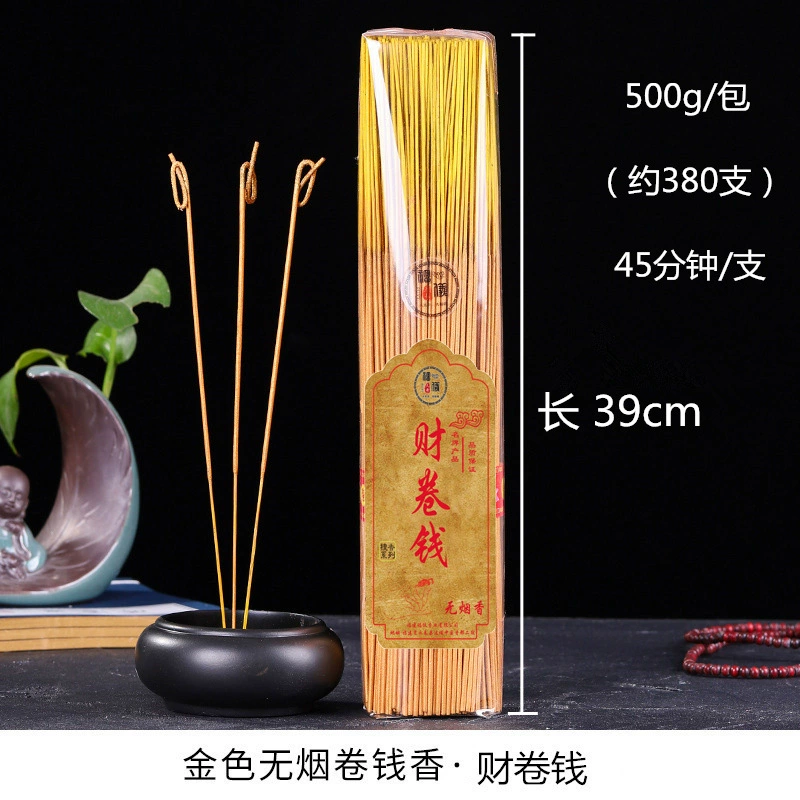 | nameOriginal | Roll money incense, God of wealth incense, smokeless incense, Gou Cai incense, household Buddhist incense, indoor sandalwood, Guanyin temple, worship Buddha and offer incense |