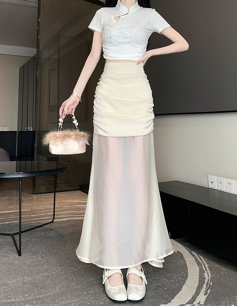 | nameOriginal | Irregular pleated versatile summer mesh splicing long skirt |