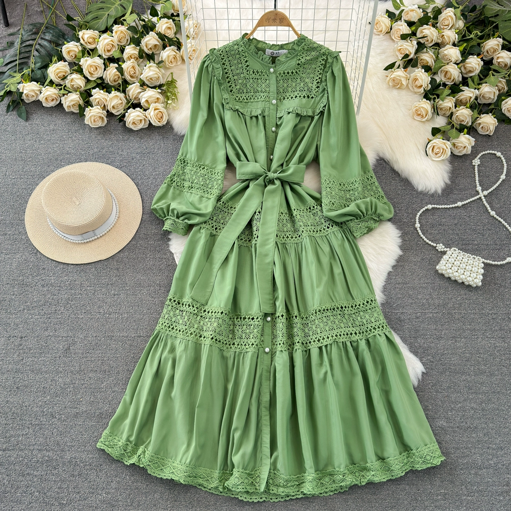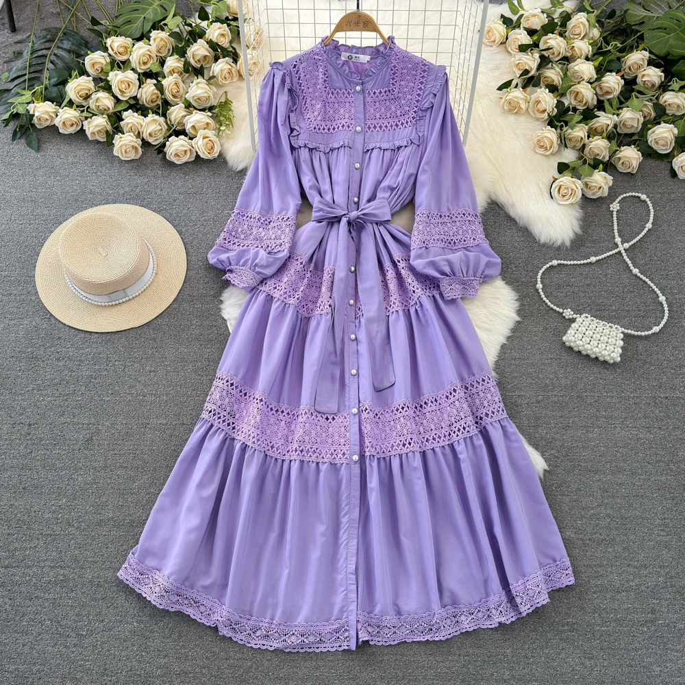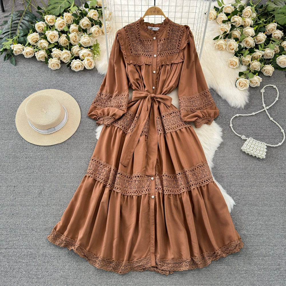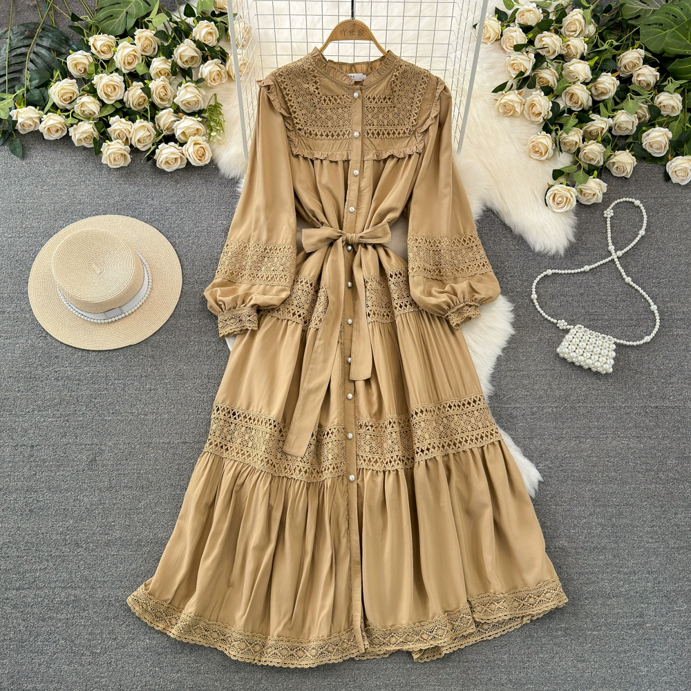 | nameOriginal | Light luxury lantern long-sleeved stand-collar A-line elegant dress |