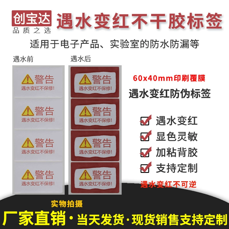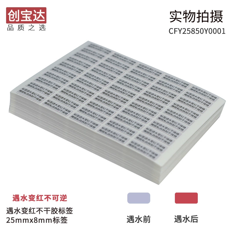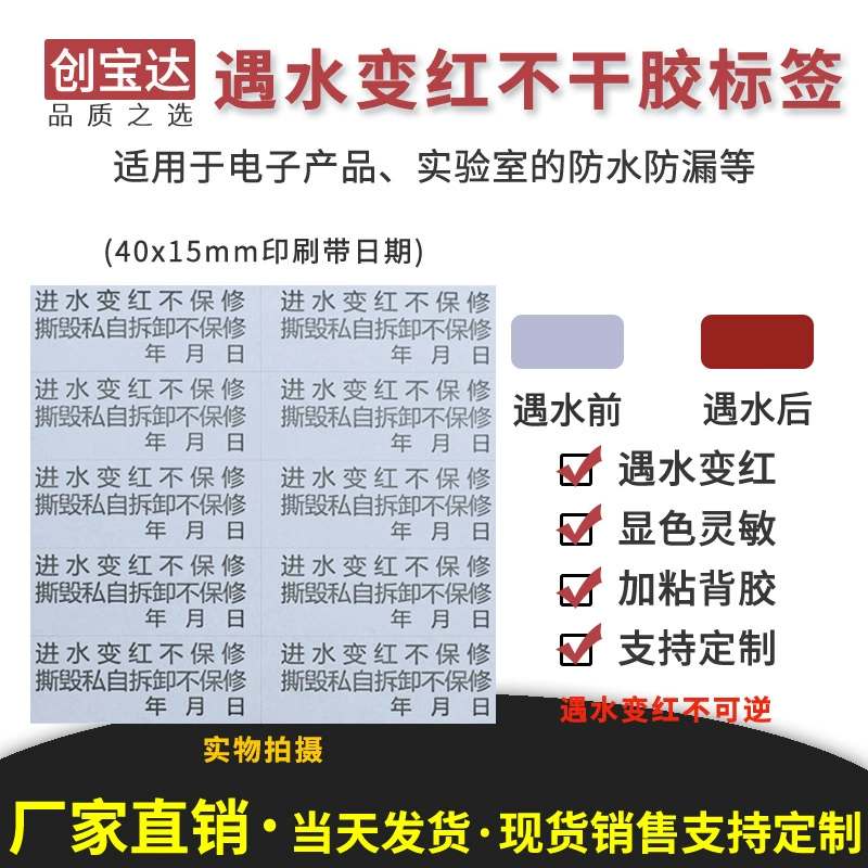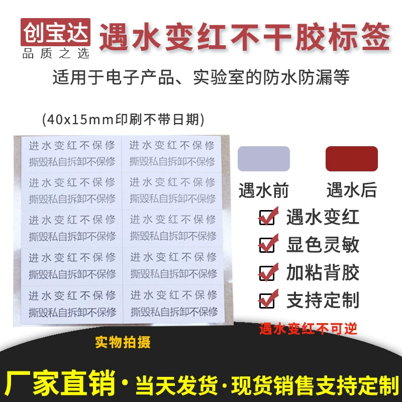 | nameOriginal | Chuangbaoda label turns red when exposed to water, electronic lithium battery warranty label, ready-made sticker that turns red when exposed to water, small round label, anti-imitation label, free shipping |