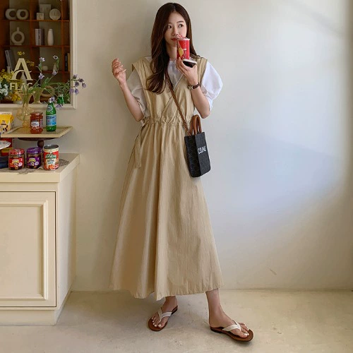 | nameOriginal | Korean chic summer age-reducing niche design temperament retro loose drawstring waist vest skirt for women |