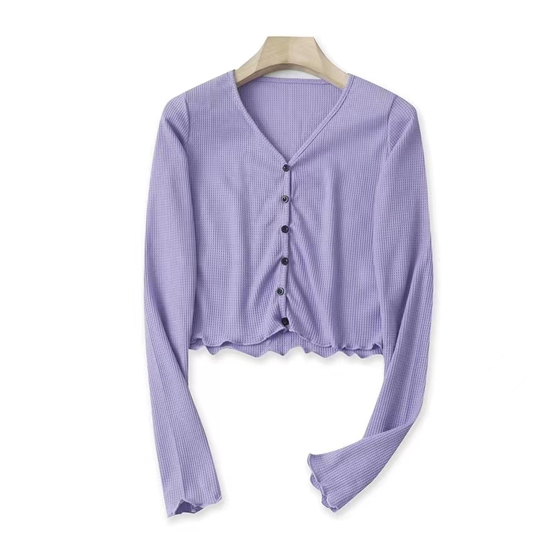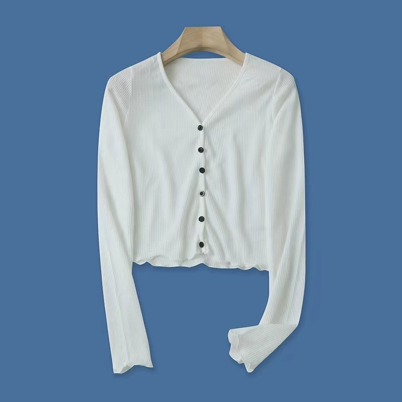 Cotton v-neck single-breasted foreign trade cardigan with earrings