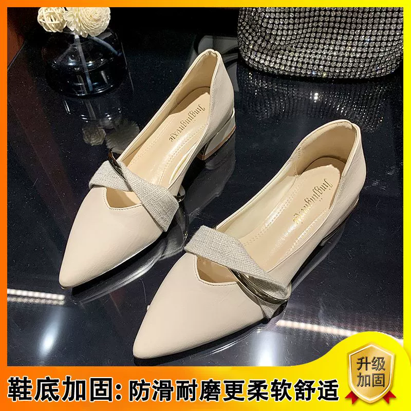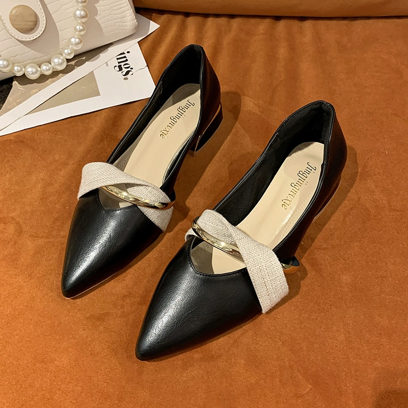 | nameOriginal | Medium heel evening style pointed toe soft leather French spring and autumn fairy shoes |