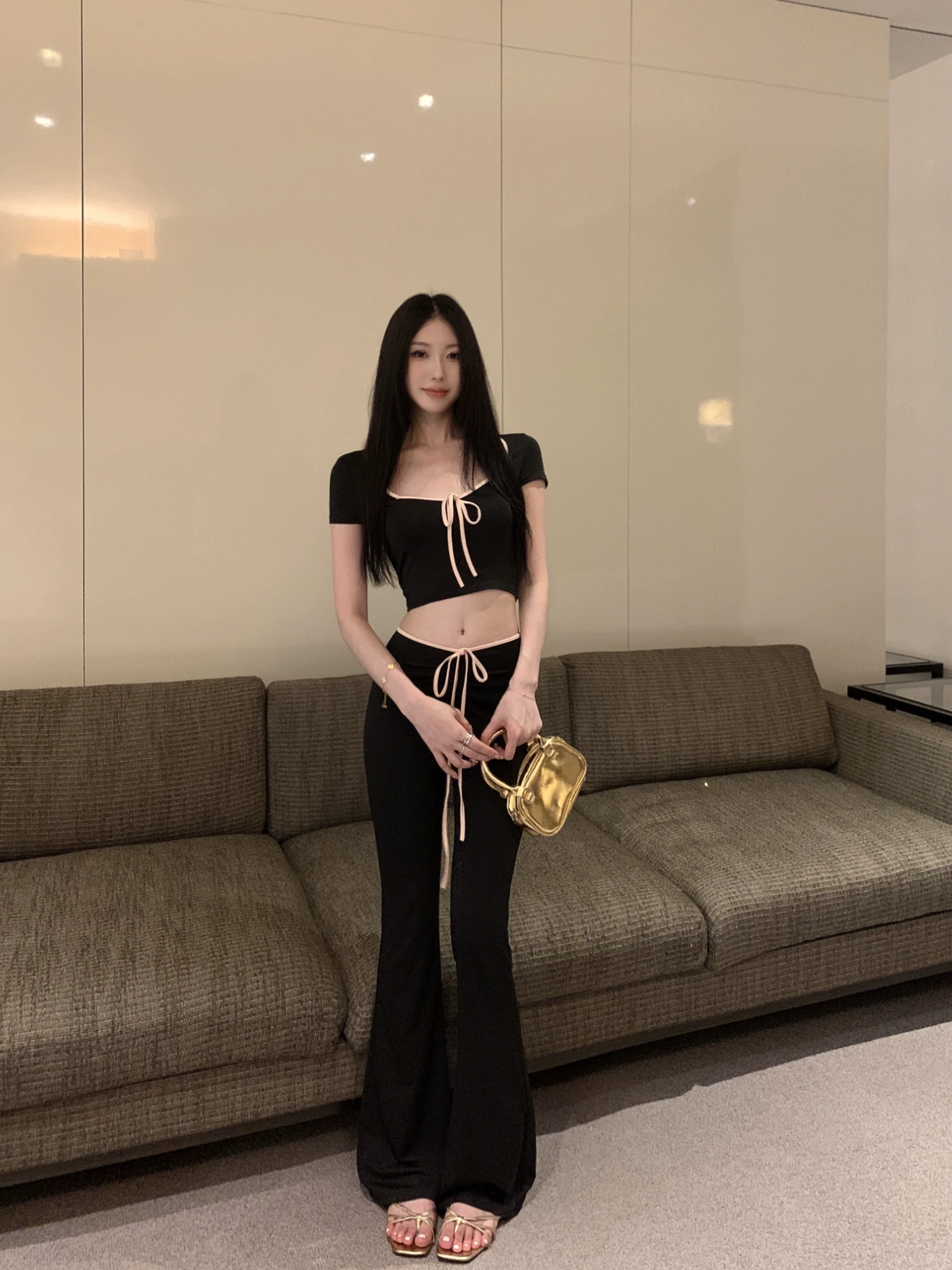 | nameOriginal | Women's summer casual flared pants two-piece set with bow |