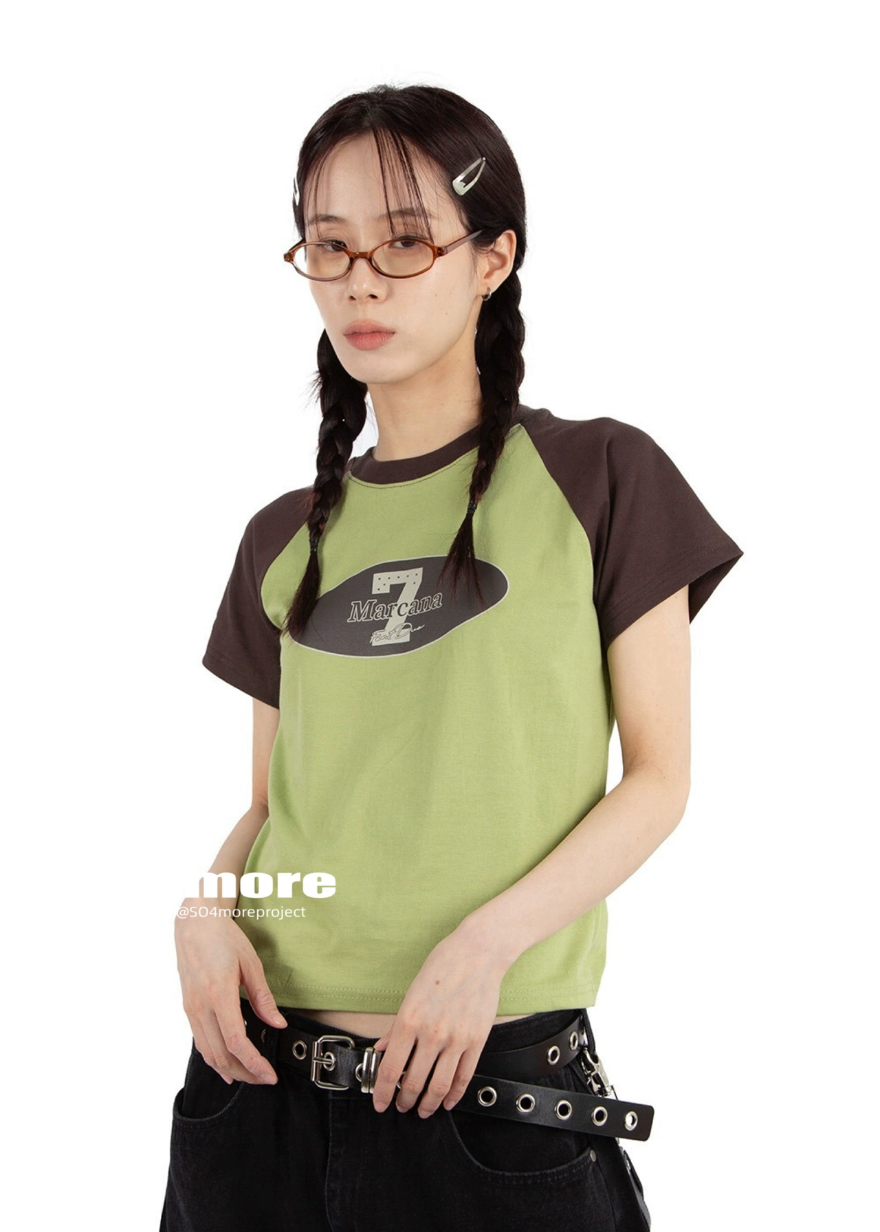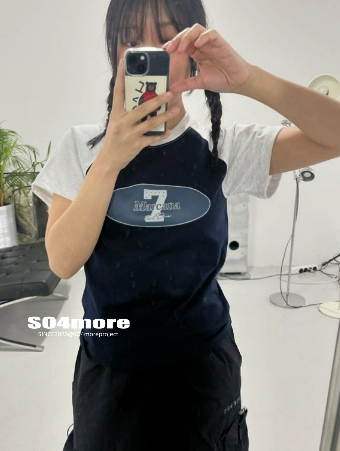 SO4more retro contrast color pure cotton slimming short-sleeved T-shirt
